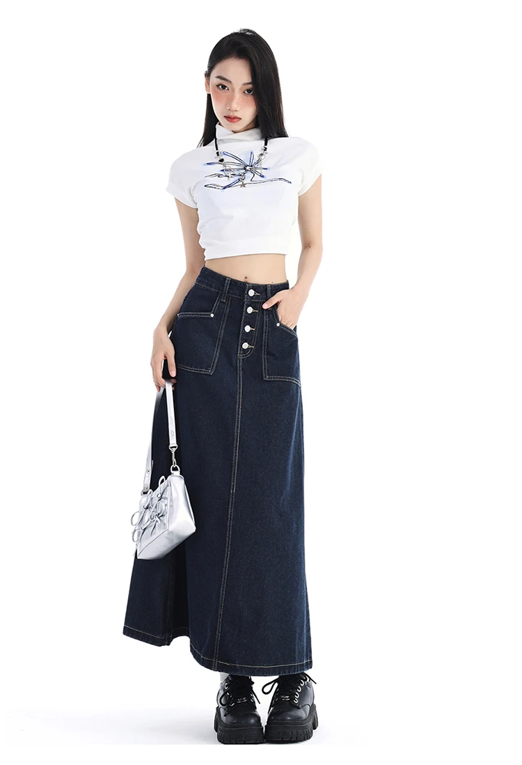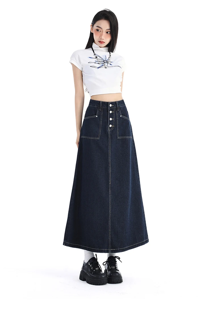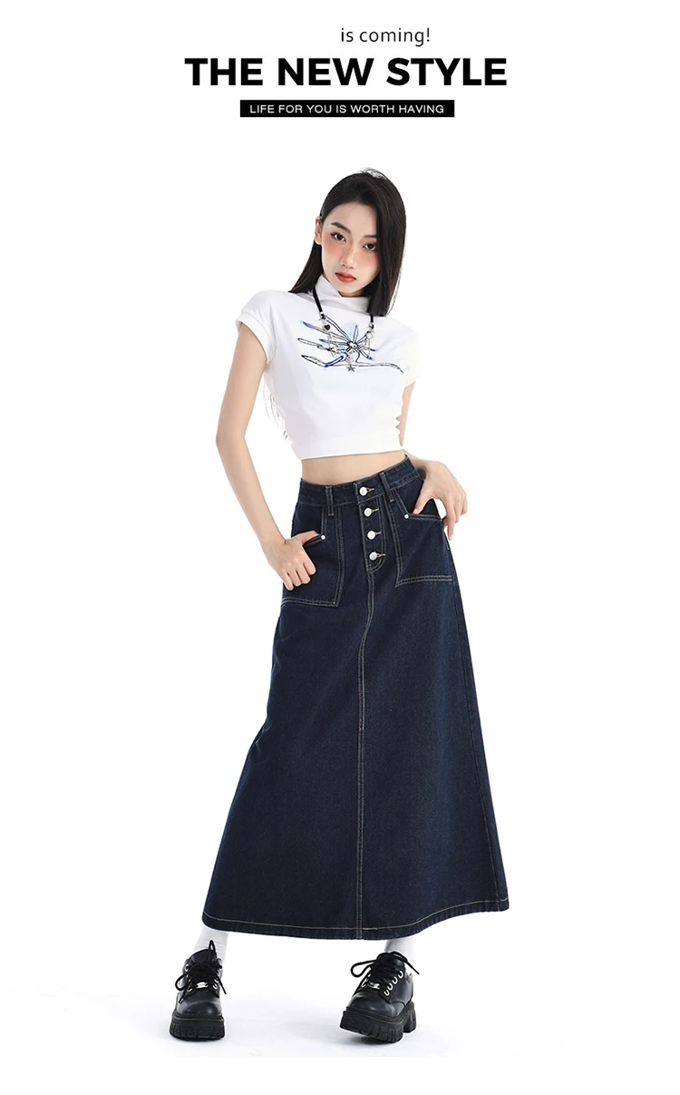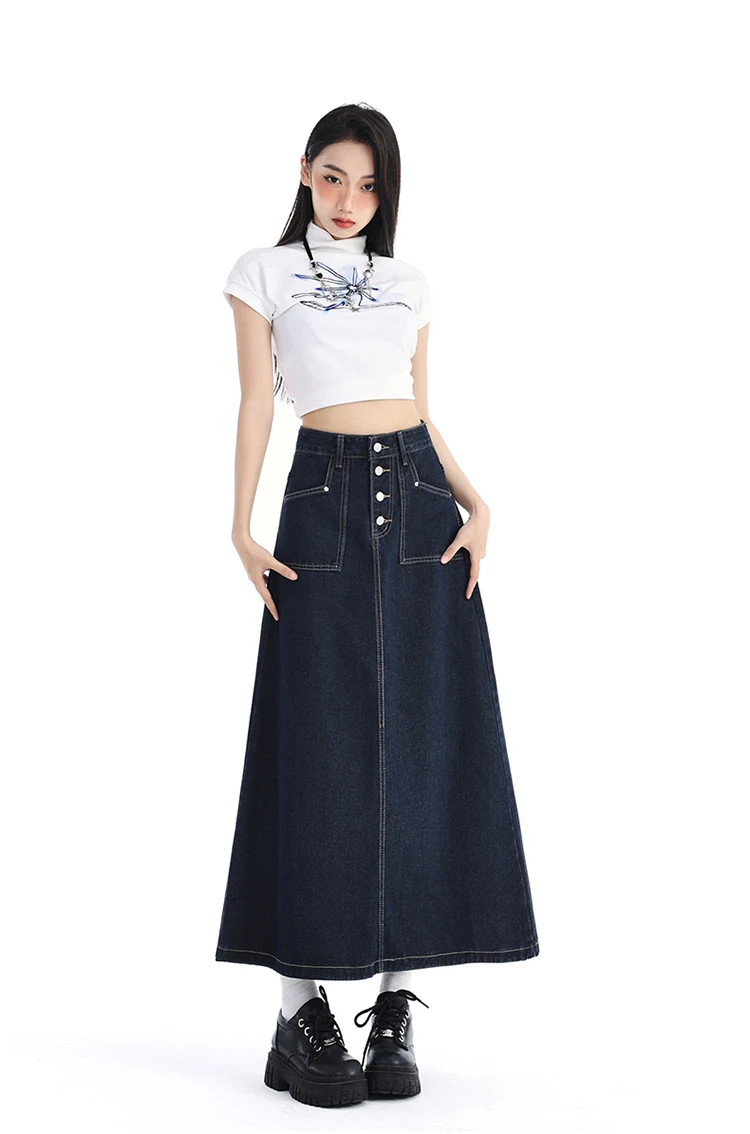 High Waist Denim Skirt Women Autumn 2024 New Arrival Single
