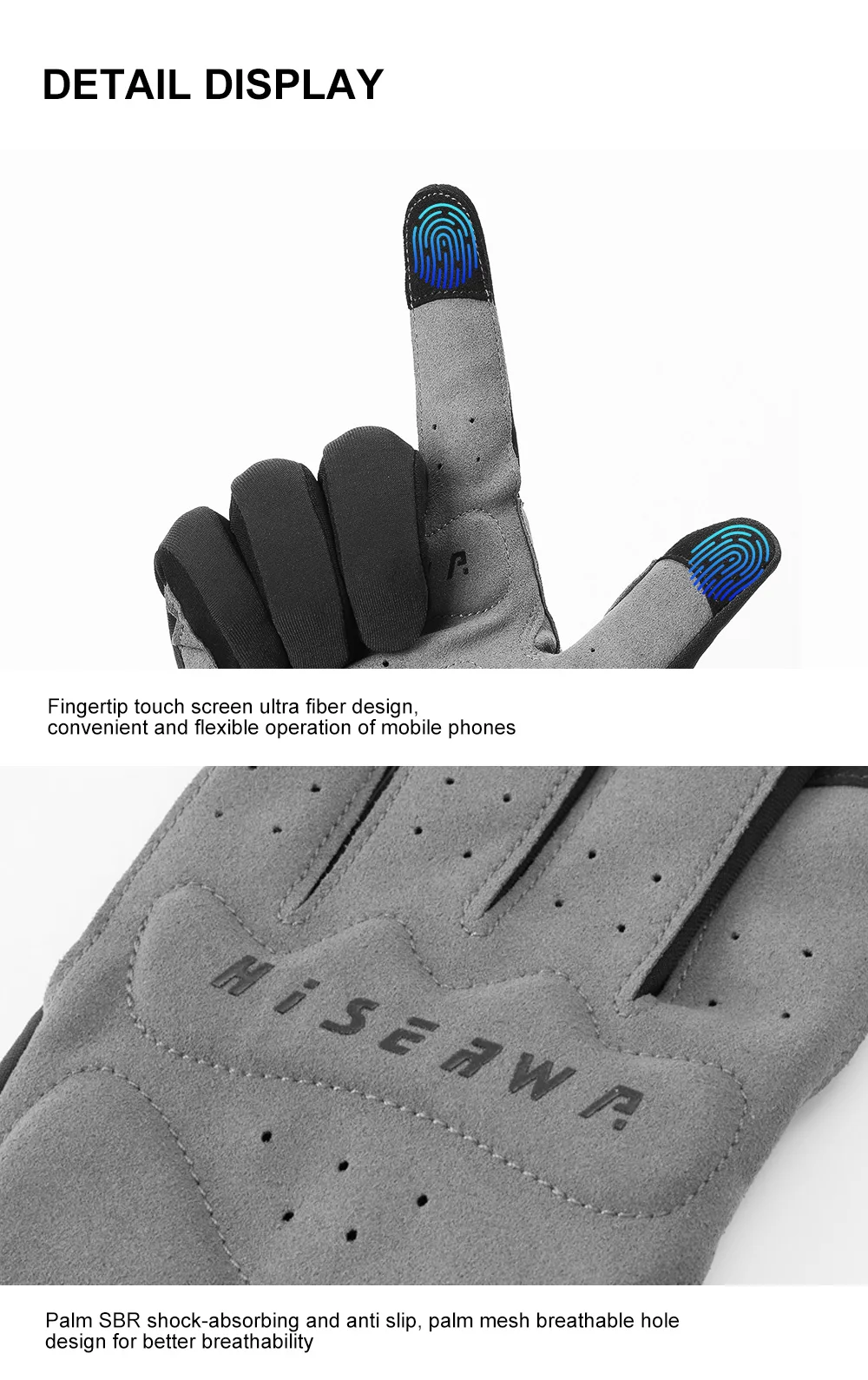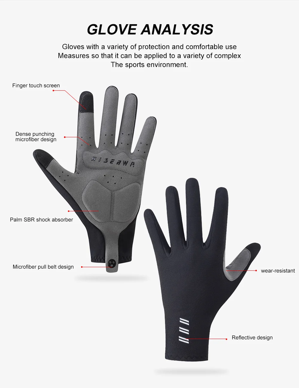 HISERWA Men Women Winter Warm Full Finger Cycling Gloves Outdoor Sports Anti Shock Touch Screen Anti Slip MTB Road Bike Gloves