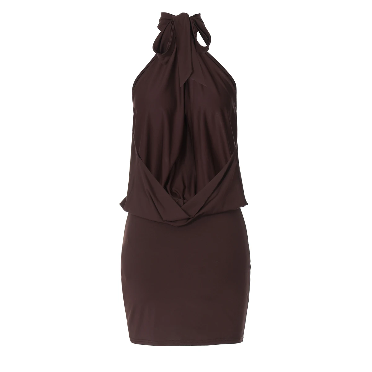 Hugcitar Fashion Halter Solid Sleeveless Backless Bandage