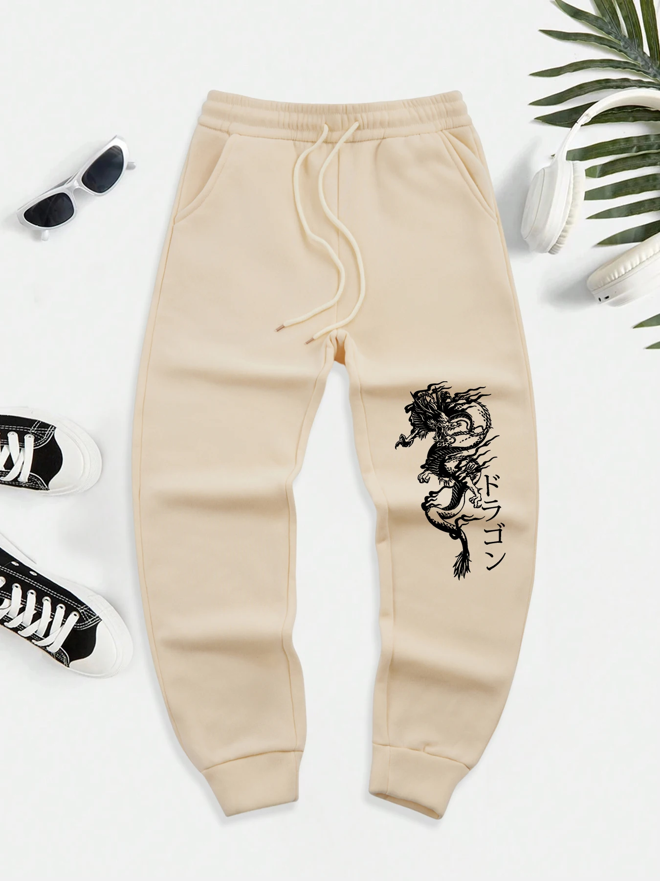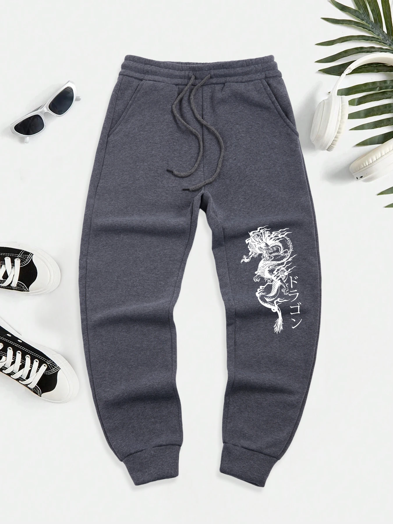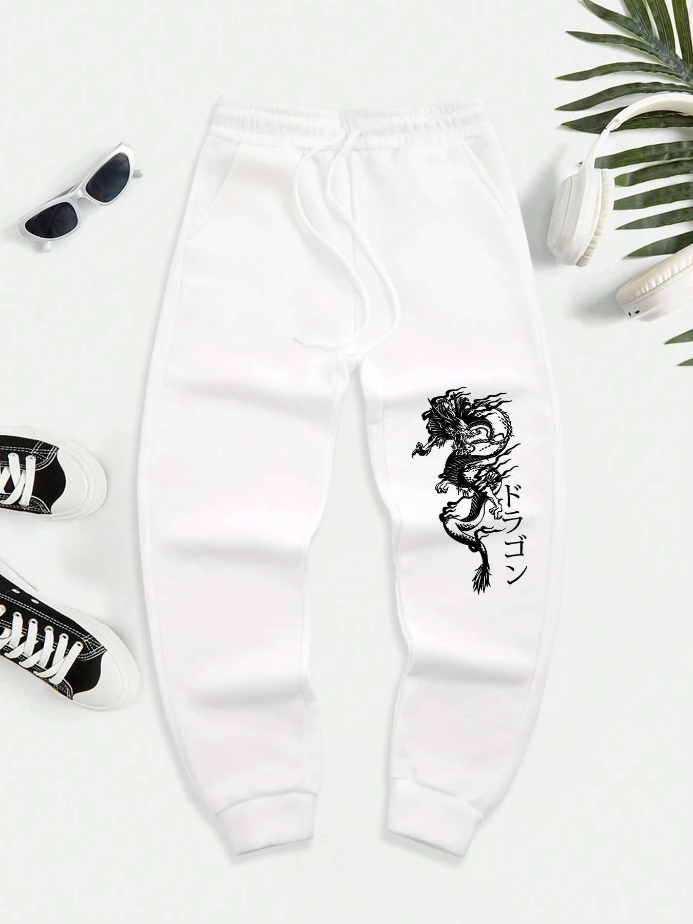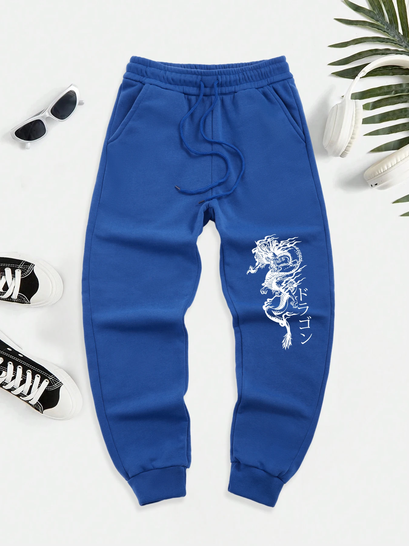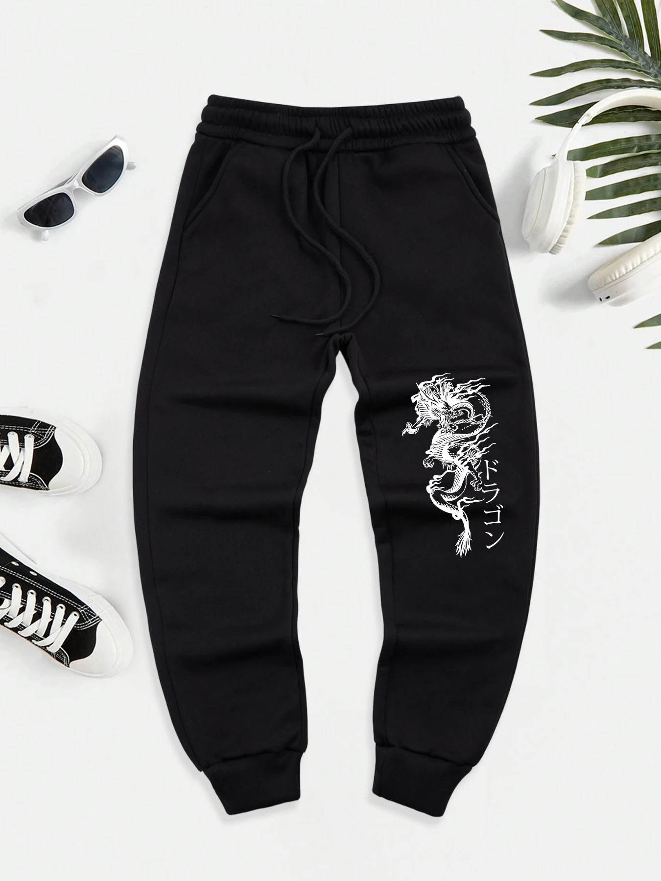 Japanese Letter And Roaring Dragon Men'S Elastic Waist Pants