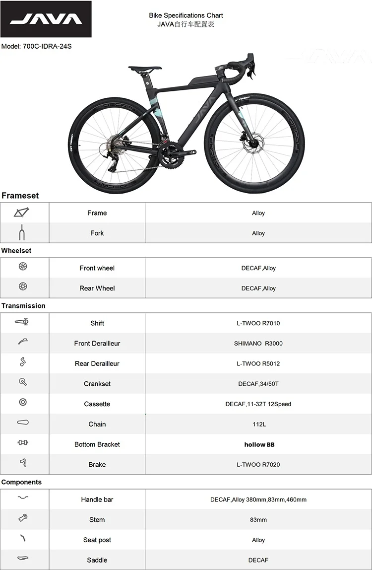 JAVA Gravel Bicycle IDRA 24 Speed Ltwoo RX Hydraulic Disc