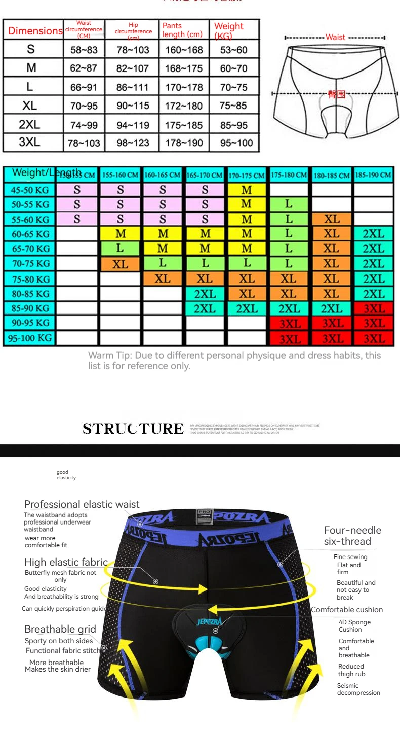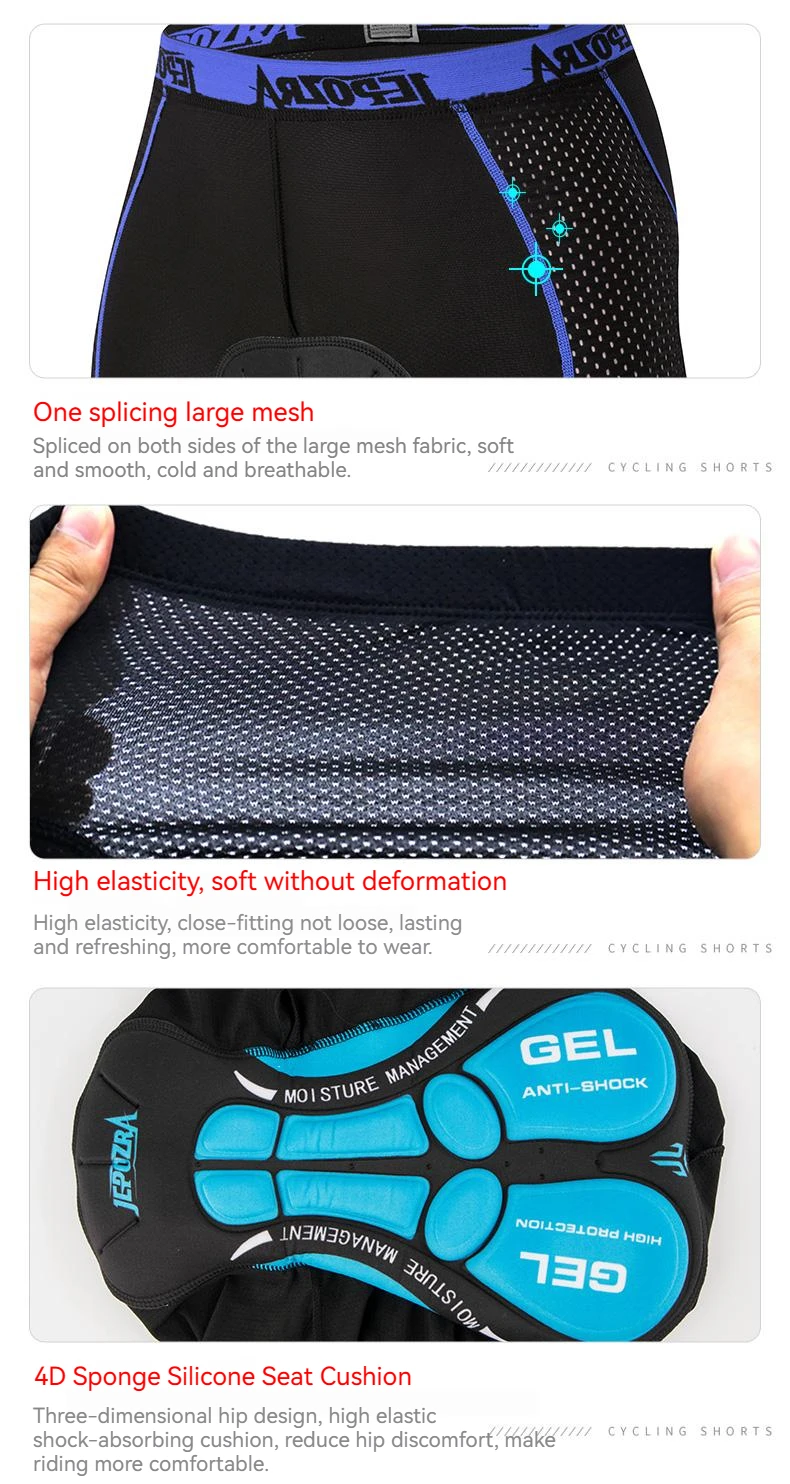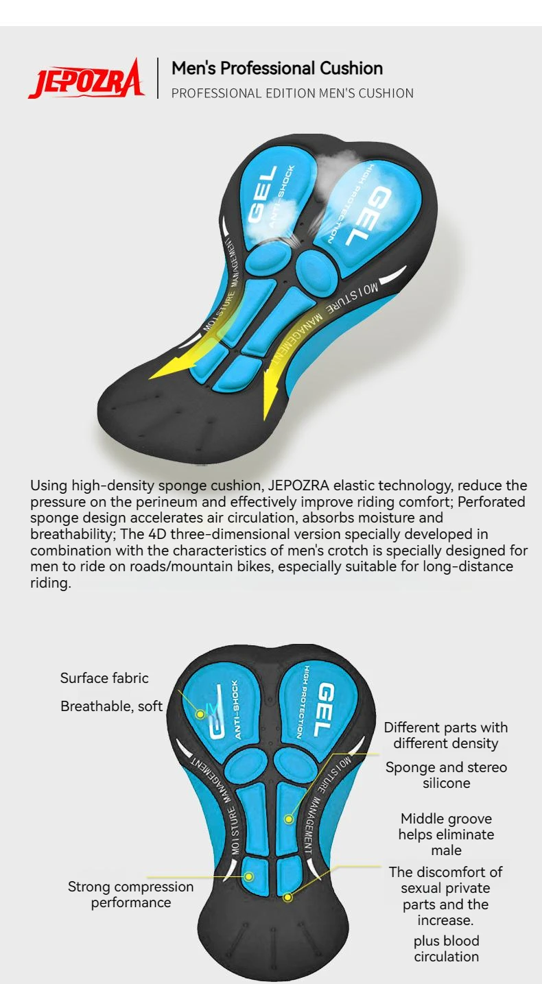 JEPOZRA Breathable Cycling Shorts for Men, 4D Gel Pad,