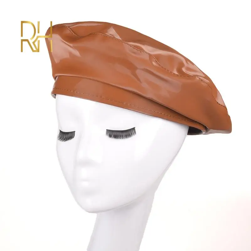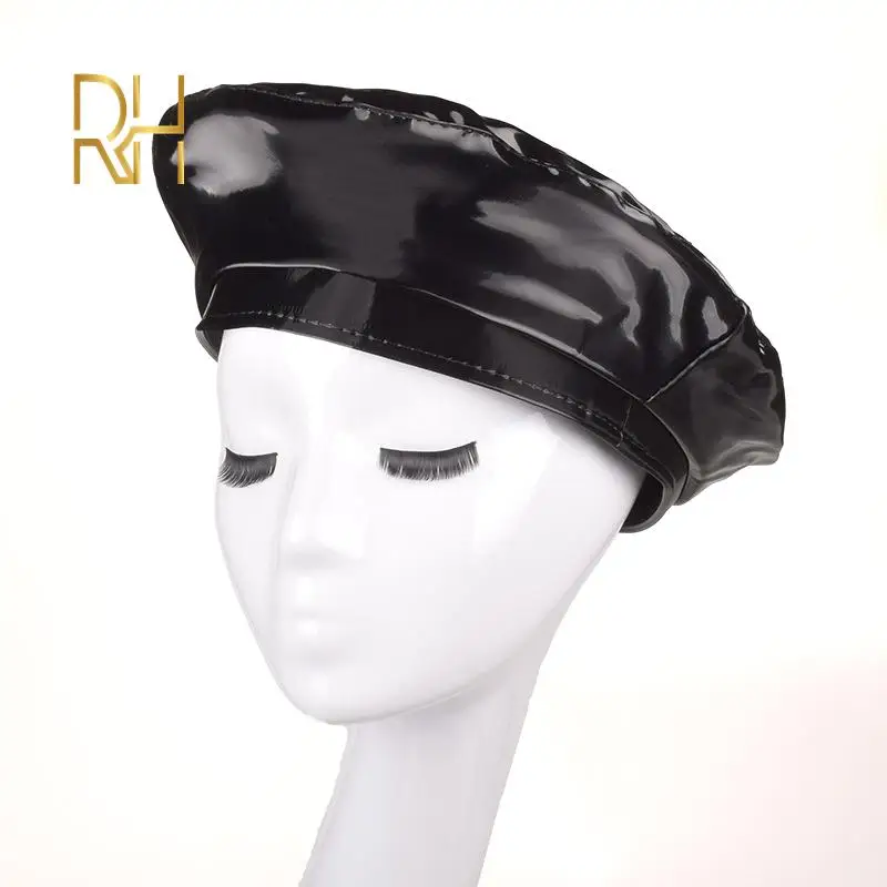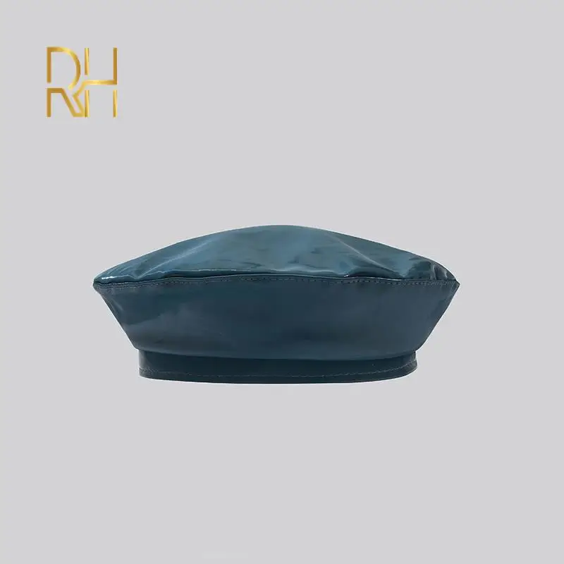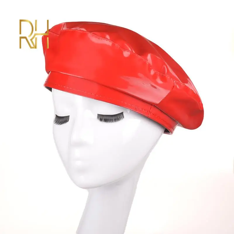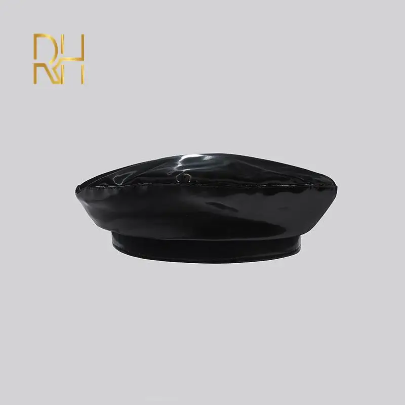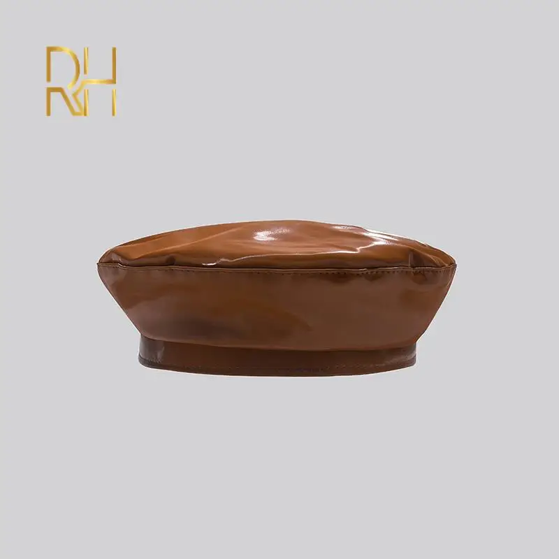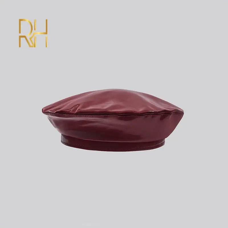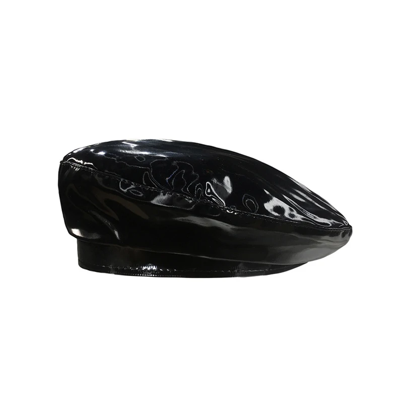 Lady mirror PU leather beret female spring autumn Winter Ski casual hat fashion French Artist painter glossy leather Beret Cap