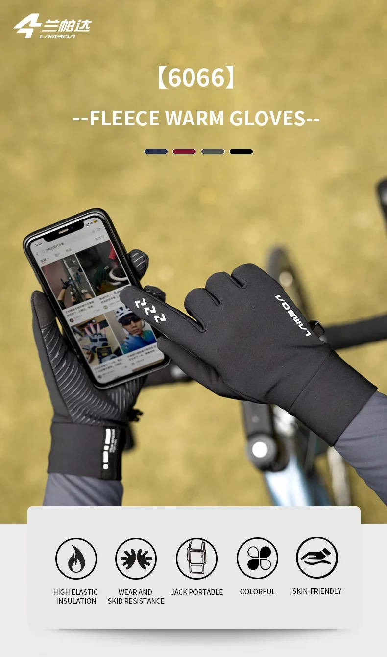 LAMEDA Fleece Cycling Gloves 5-15℃ Touchscreen Riding Thermal Winter Road Mountain Bike Full Finger Gloves Cycling Accessories