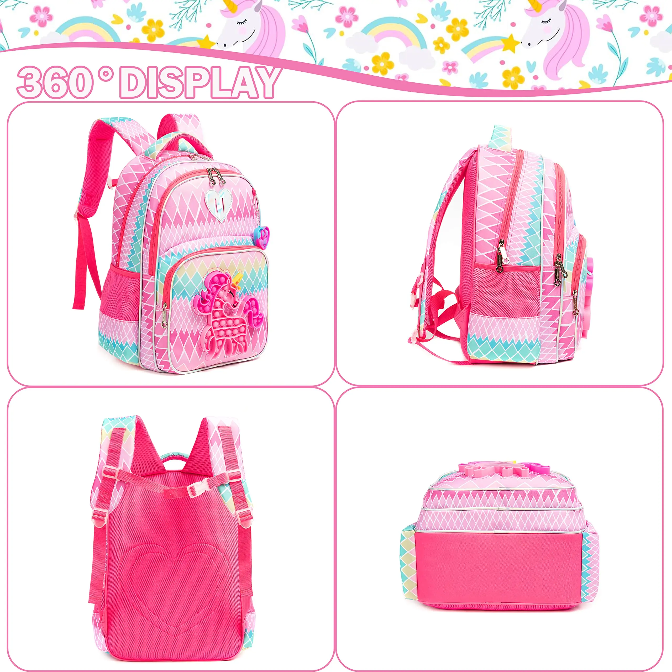 [Girls Backpack Details]High quality of Polyester fiber made,Anti-slip chest buckle,Comfortable breathable widened straps and ventilation back design, effectively relieve shoulders pressure; 3 layers of comfortable system: breathable mesh system; widening delivery system