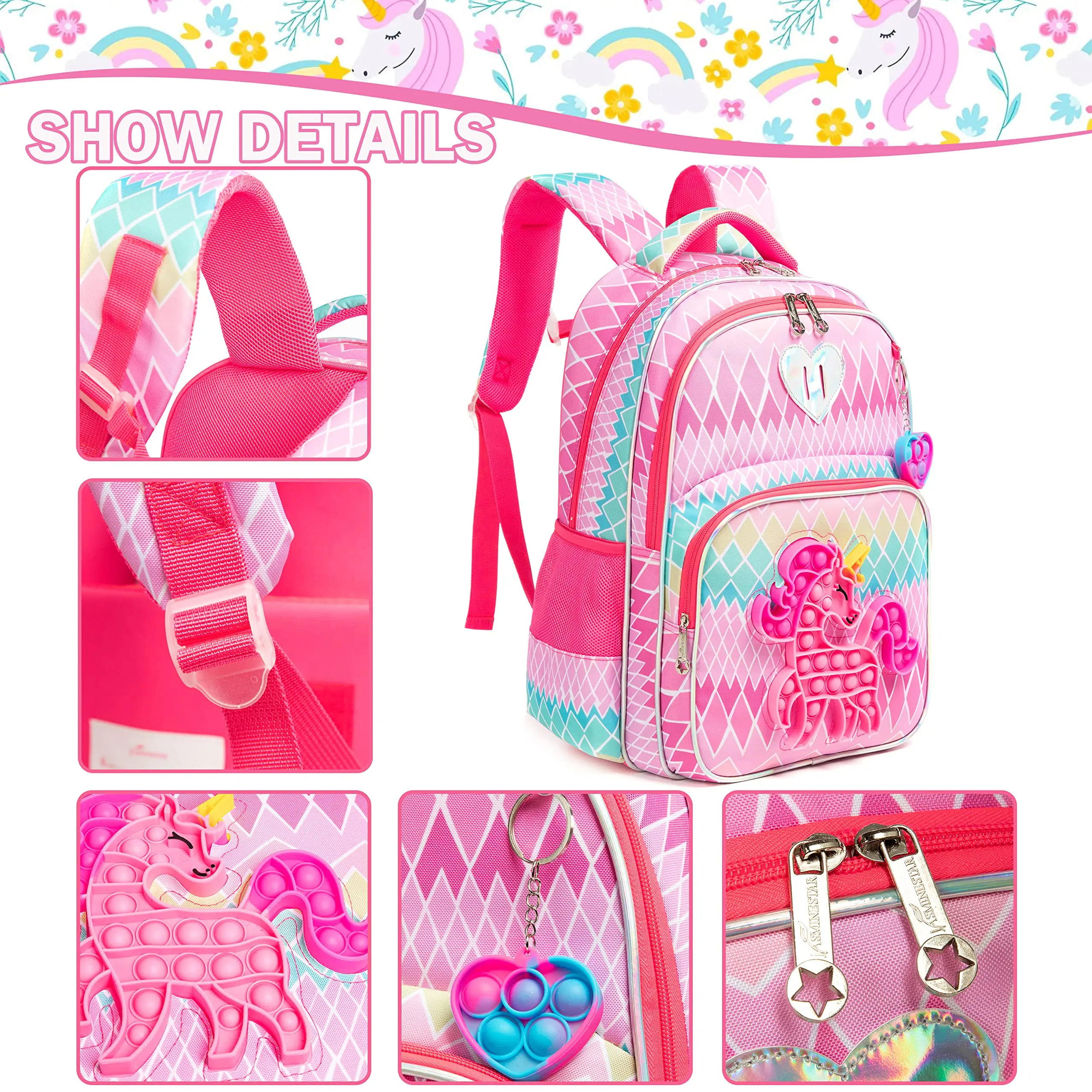 [Girls Backpacks Wide Application] Girls kindergarten age 5-8 who likes unicorn,girls elementary school bag with lunch box age 6-8.The 4 in 1 backpack is good ideal for various occasions like school, travel, hiking and camping ,tourism.This cute school bag is the best choice for back to school, Christmas, New Year, Birthday gifts.