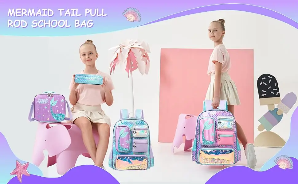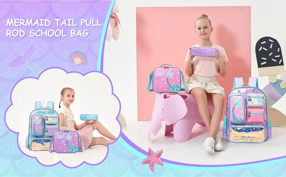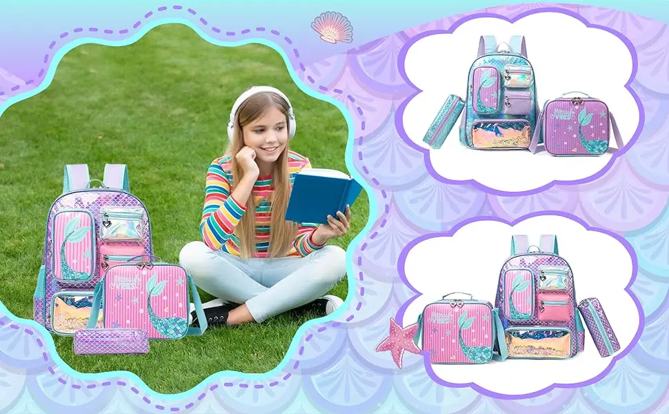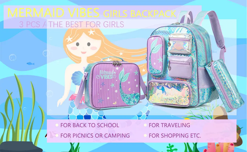 Meetbelify Mermaid Backpack for Girls Bookbag for Girls with