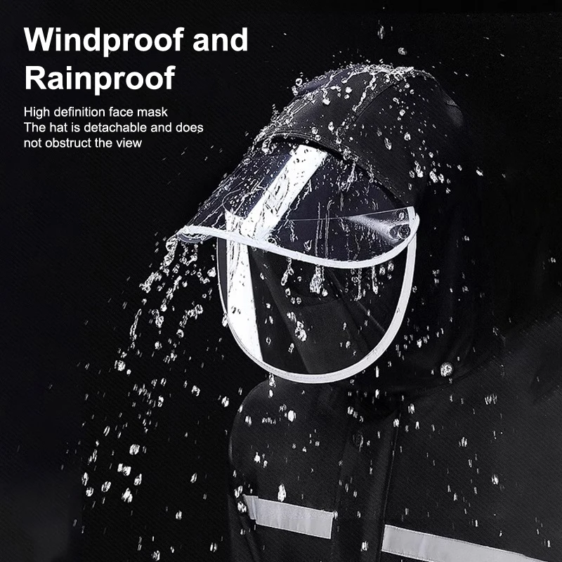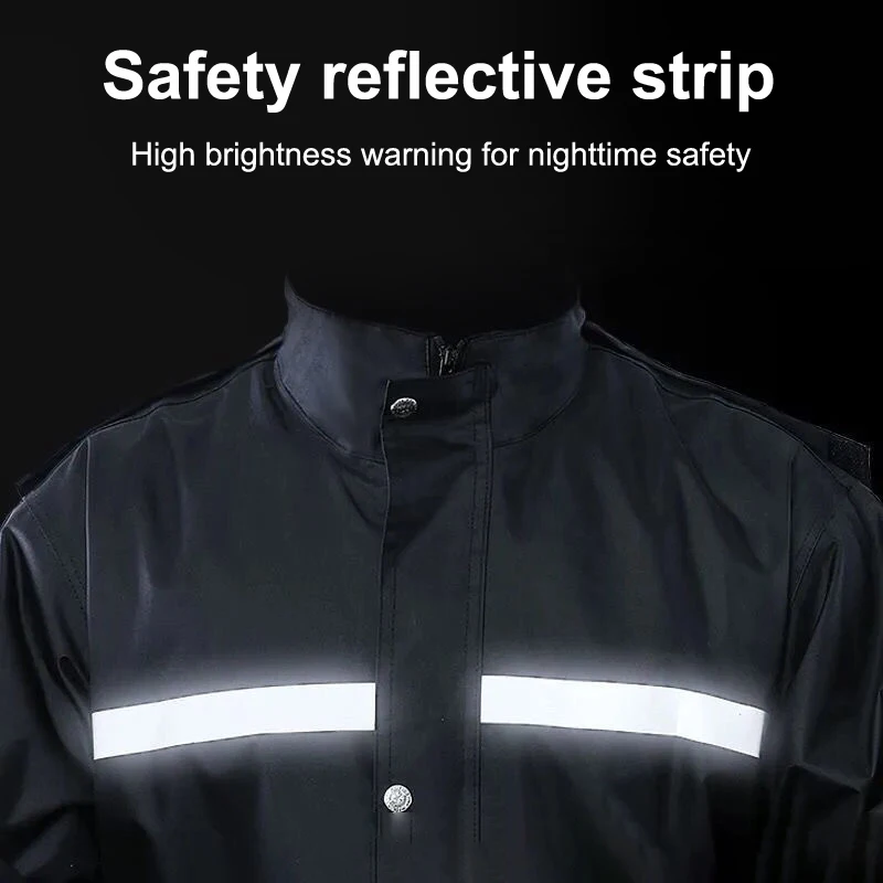 1. Reflective design: The suit is equipped with reflective strips, which can increase visibility in the dark or rainy days and improve the safety of the wearer.