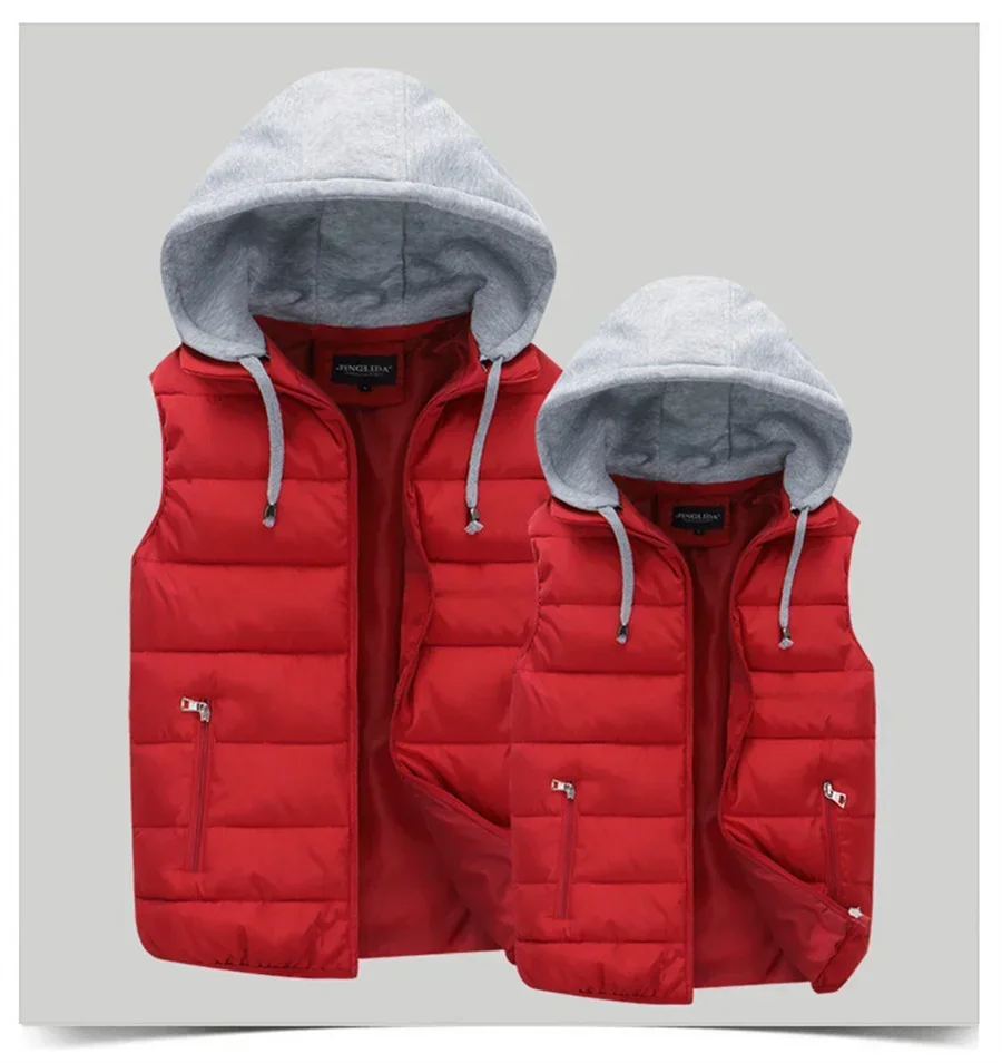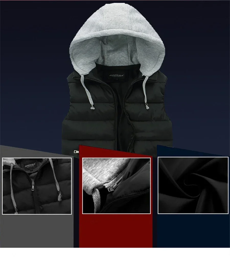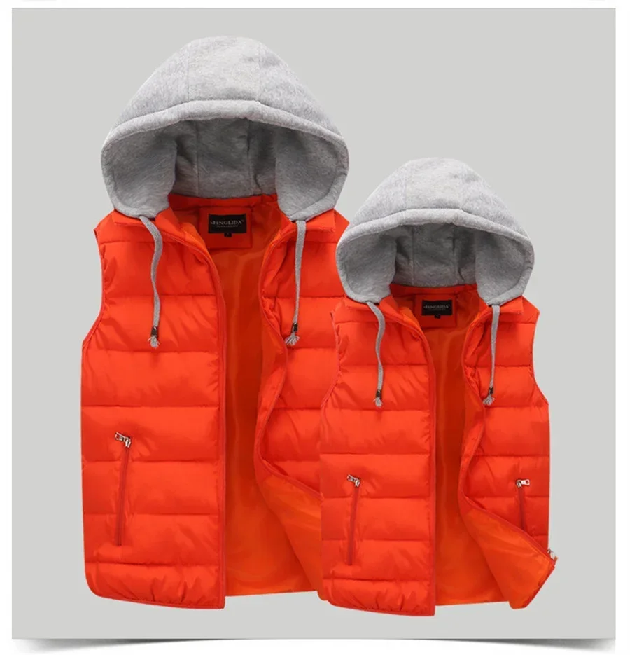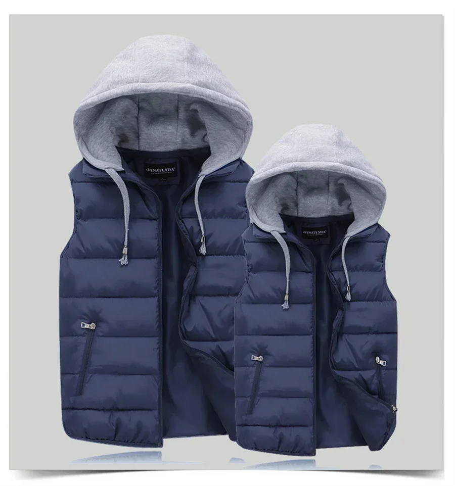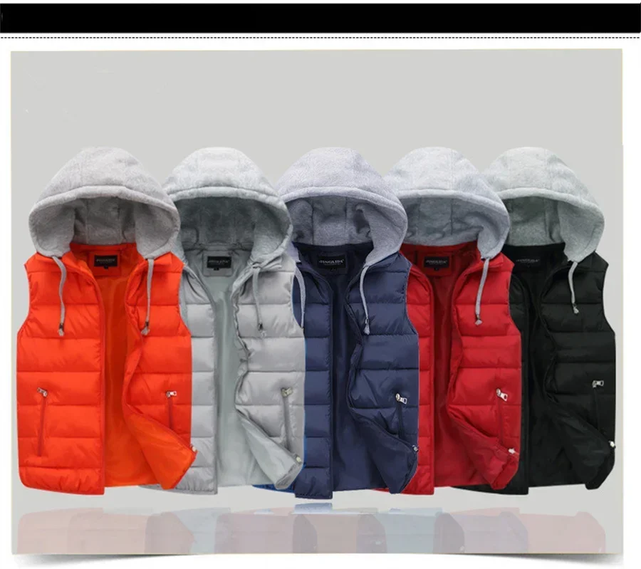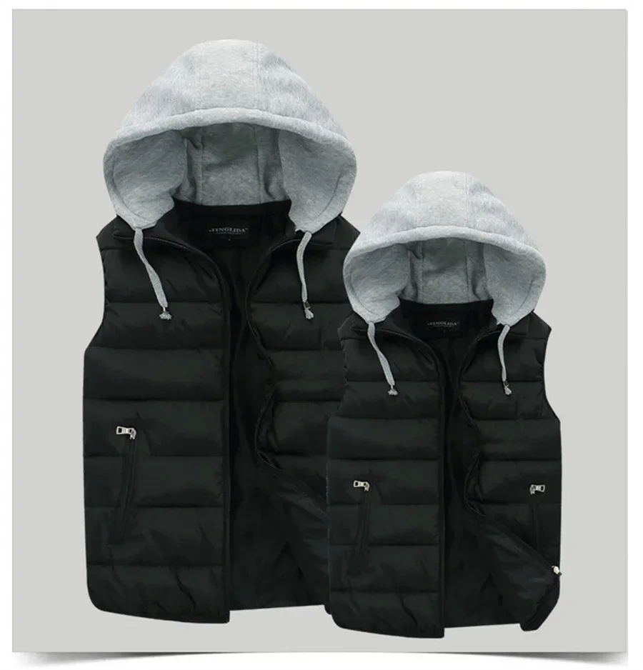 Men's Padded Vest Autumn Winter Hooded Jackets Outerwear