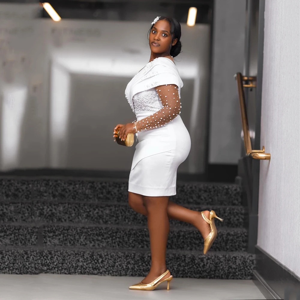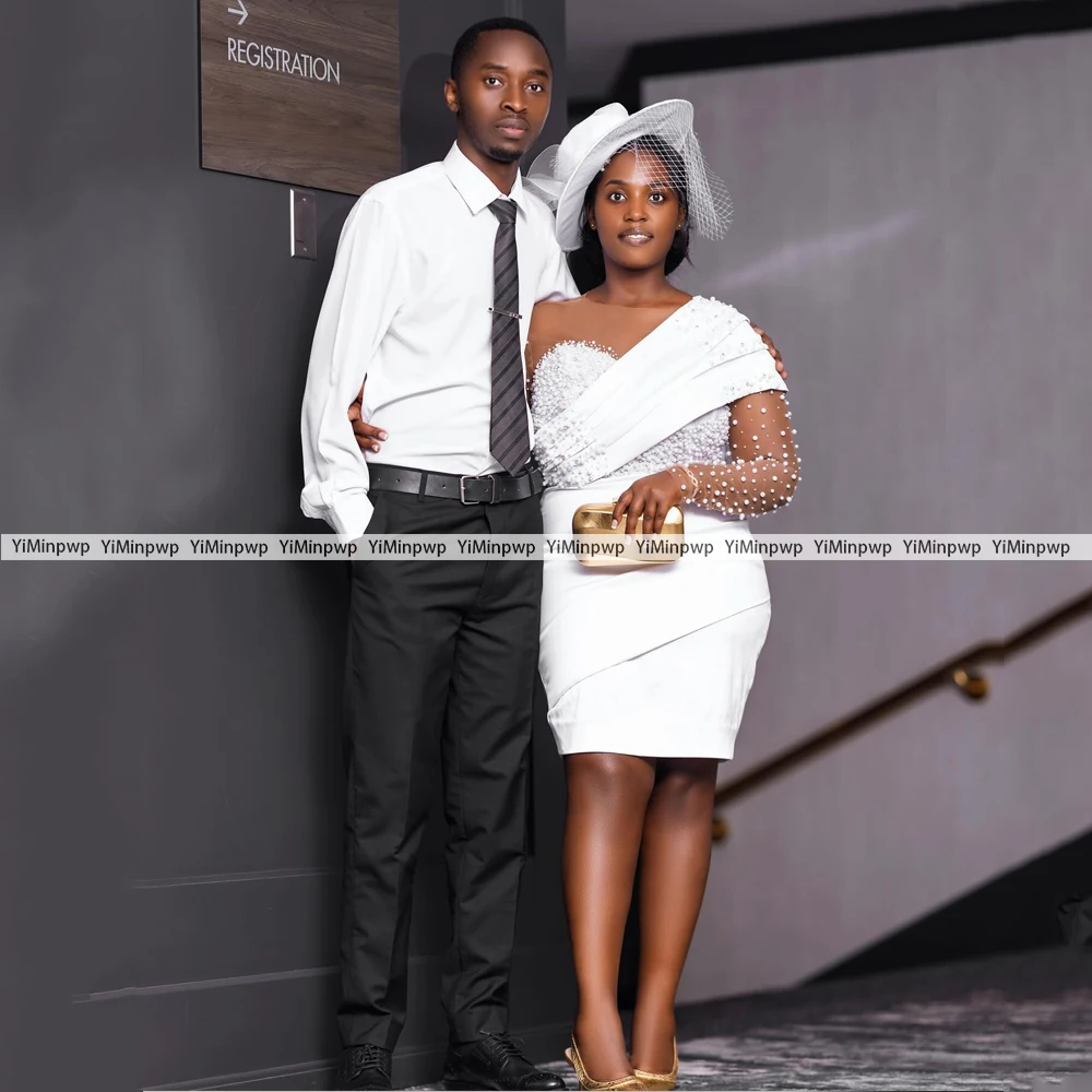 Mini Beaded Wedding Dresses 2025 Women Long Sleeve Pearls