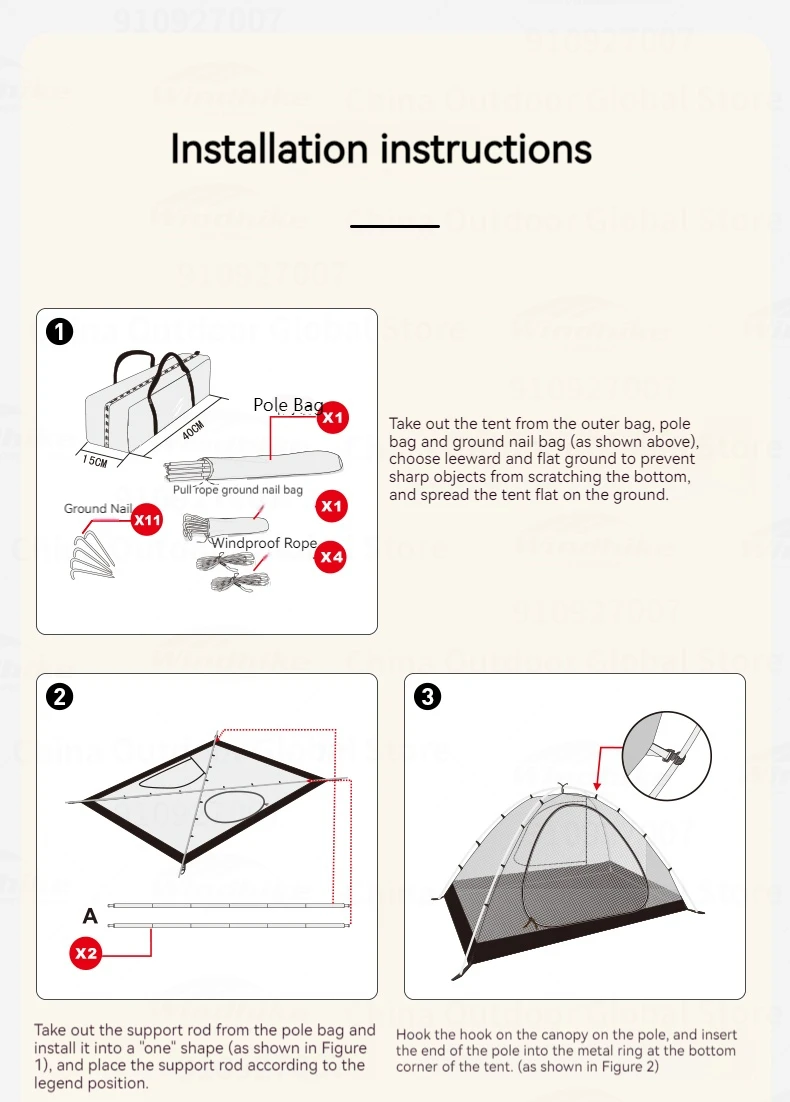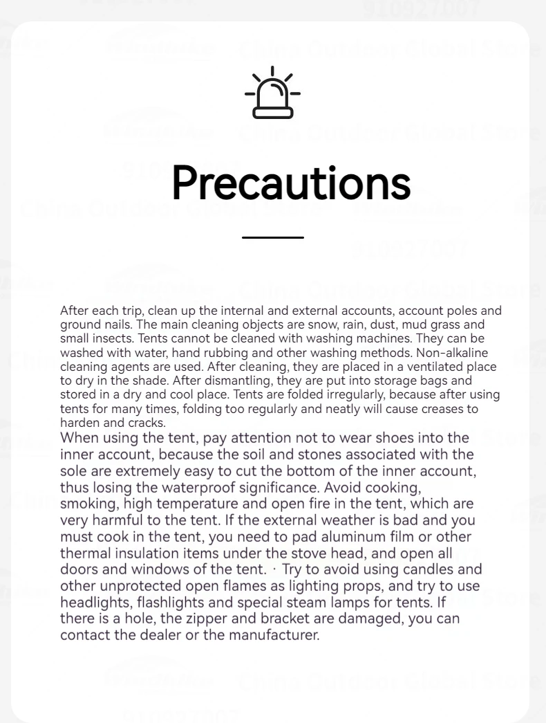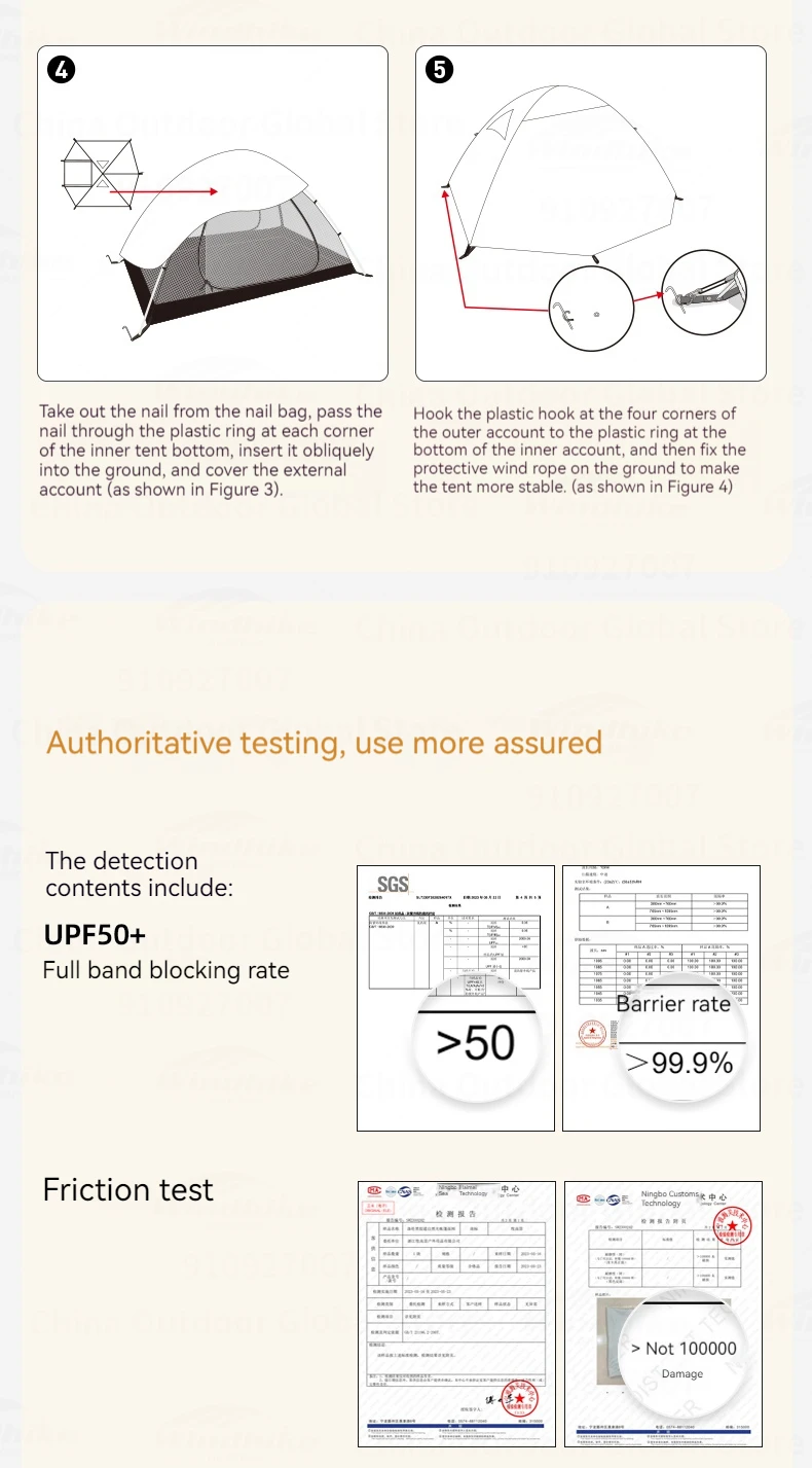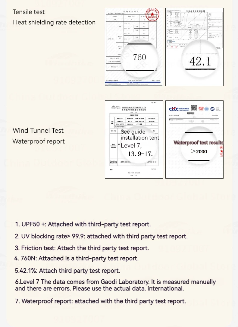 Outside Tent Waterproof Index: 2000-3000 mm