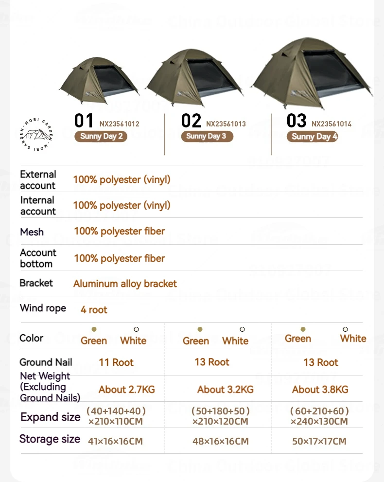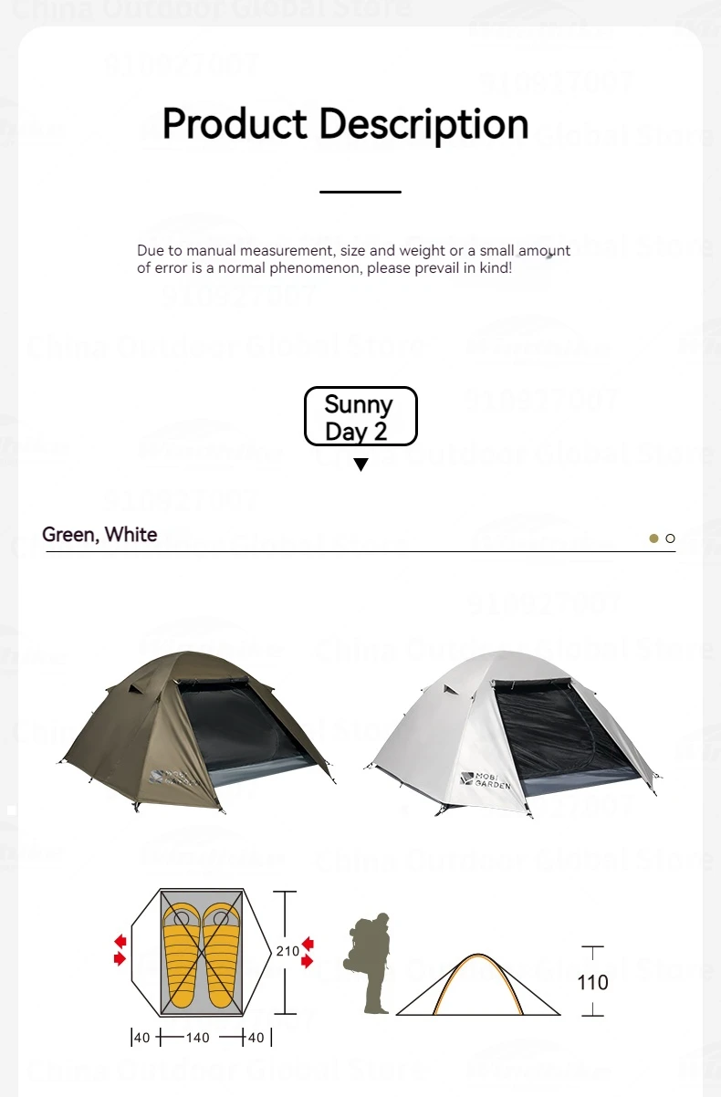 MOBI GARDEN Camping Hiking Tent 2-4 Person Portable