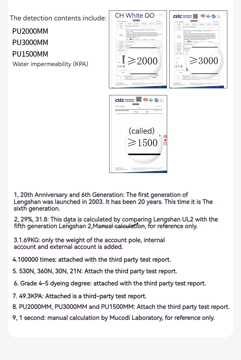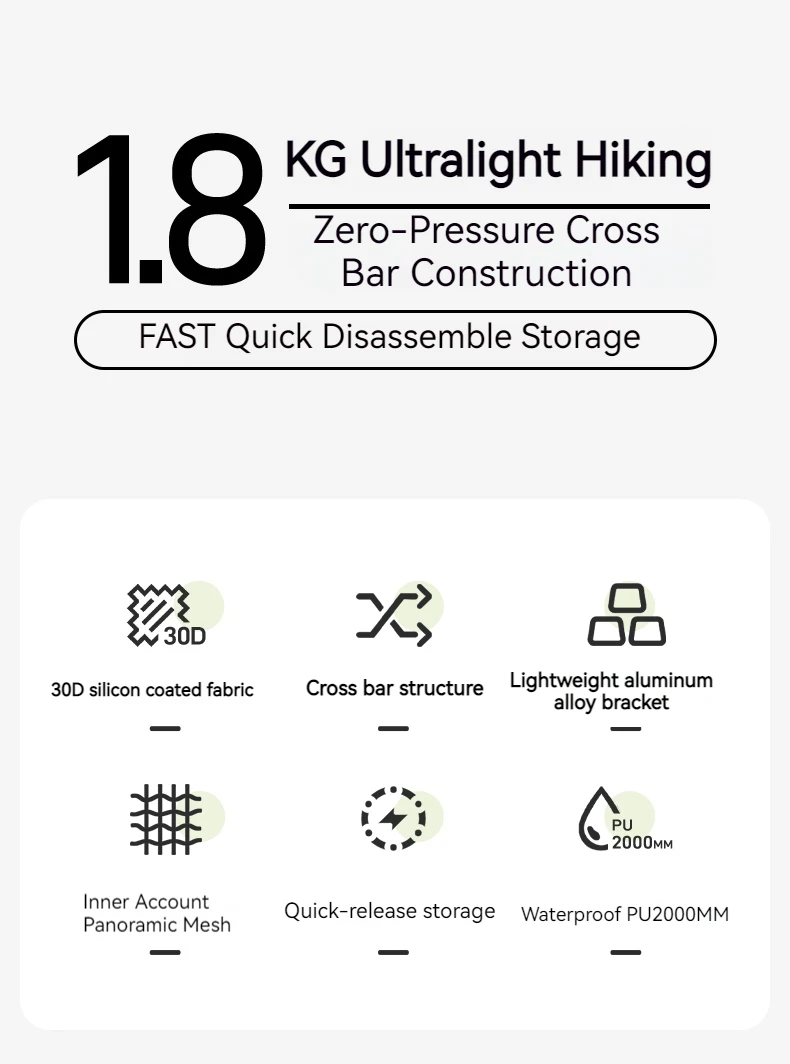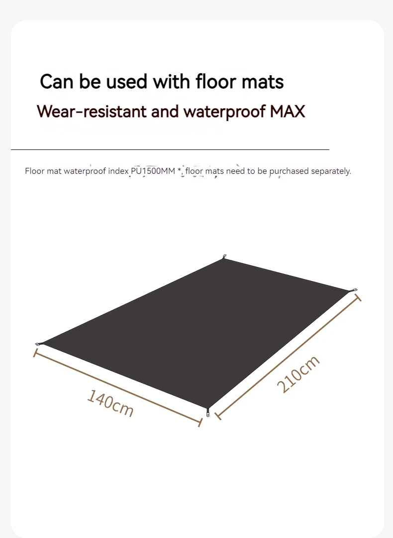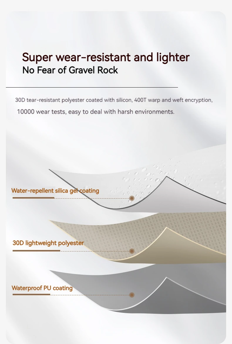 Bottom tent: 30D 400T polyester (PU3000MM, silicone coated)