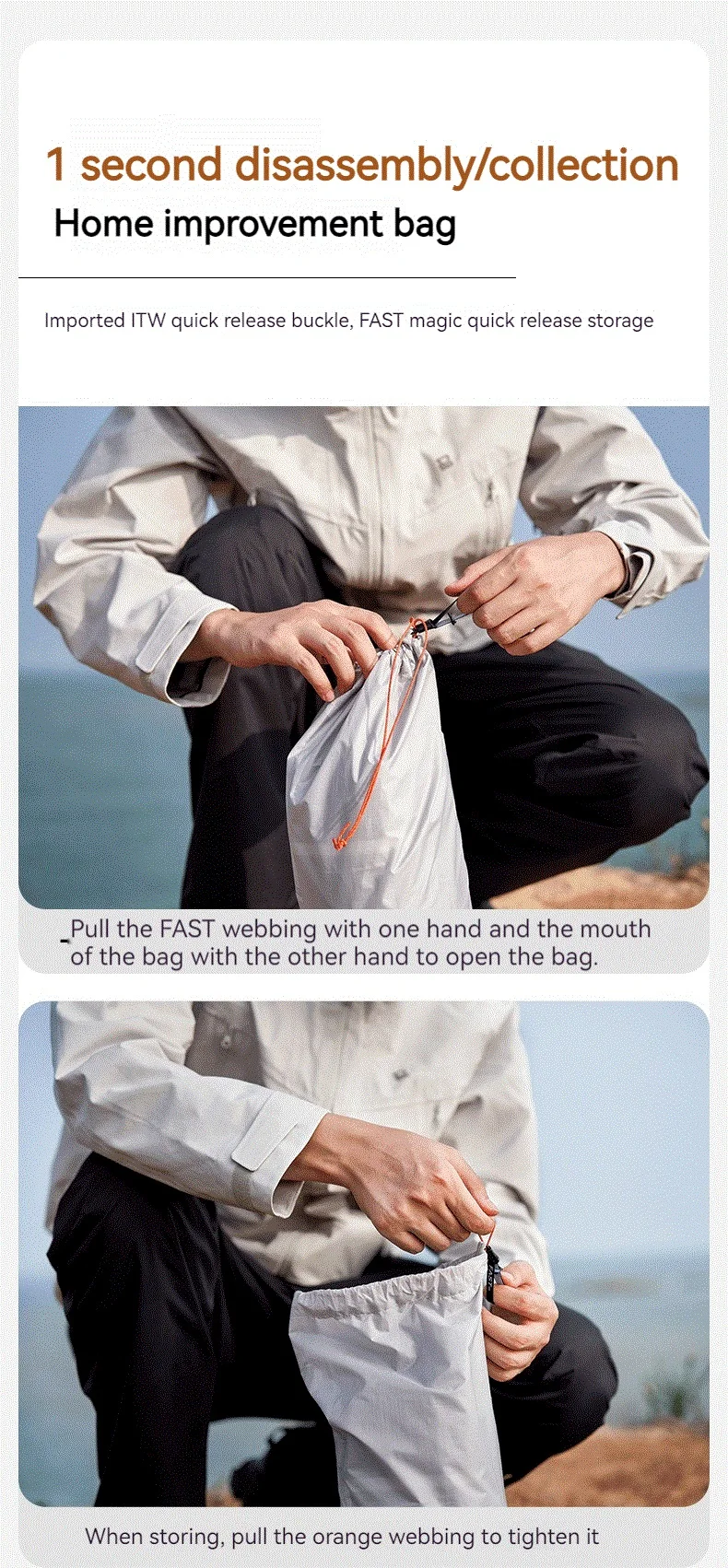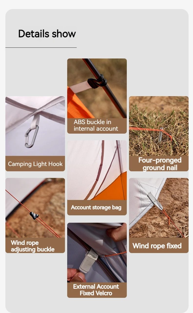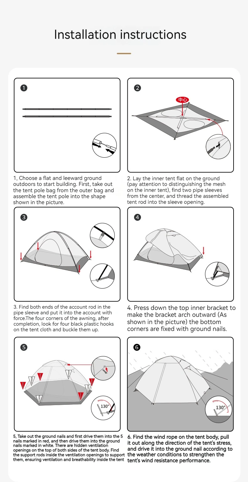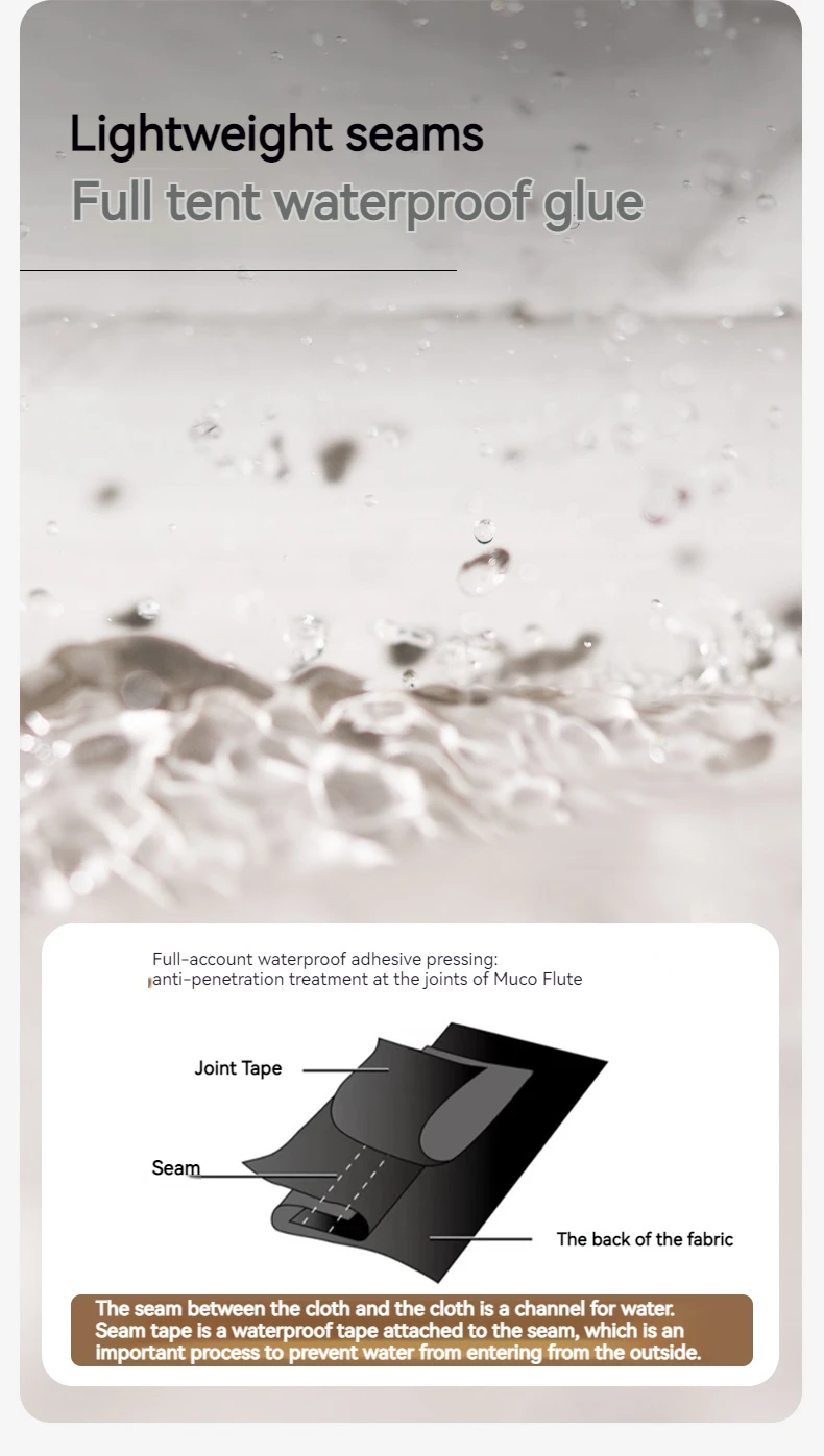 Bottom tent: 30D 400T polyester (PU3000MM, silicone coated)
