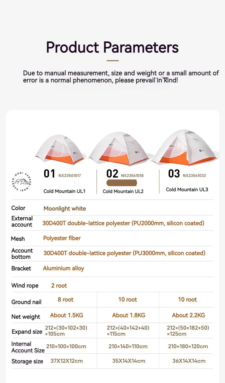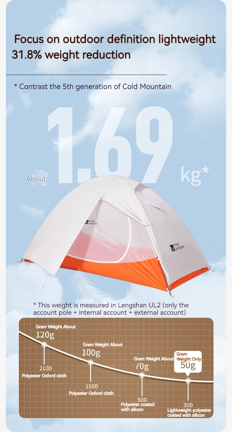 MOBI GARDEN Cold Mountain UL1/2 Ultralight Hiking 1/2 Person