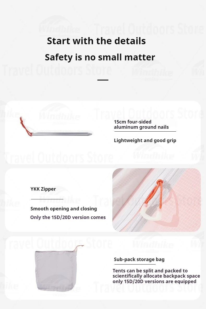 Tent bottom: 20D 410T double-line nylon (PU4000mm, silicone coated)