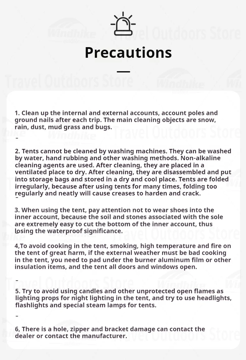 Outside Tent Waterproof Index: 2000-3000 mm