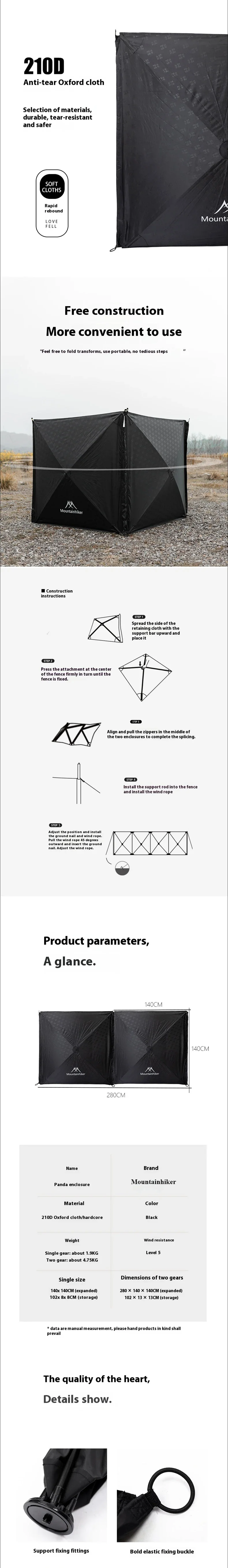 MOUNTAINHIKER Black Outdoor Windshield Curtain Camping