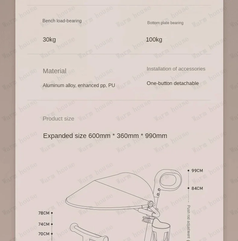 Multifunctional Baby Stroller 6in1 Adjustable Push Rod with