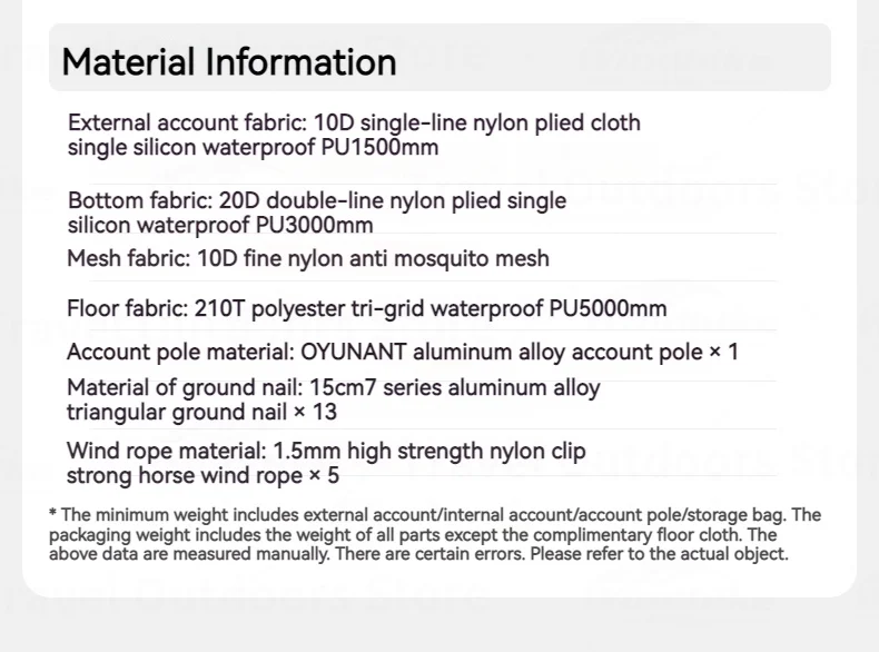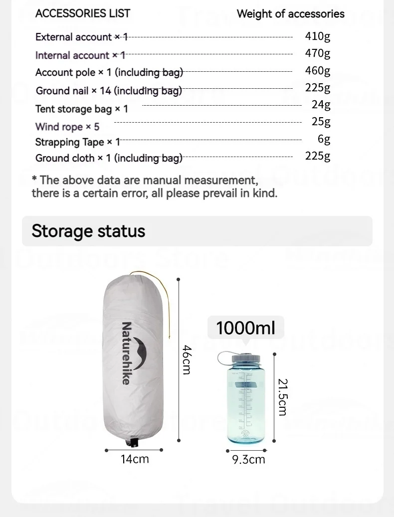 Accessories: Ground Nail *14 / Wind Rope *5(260g)