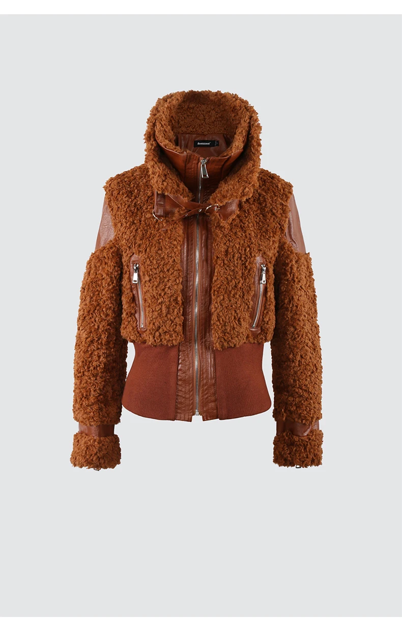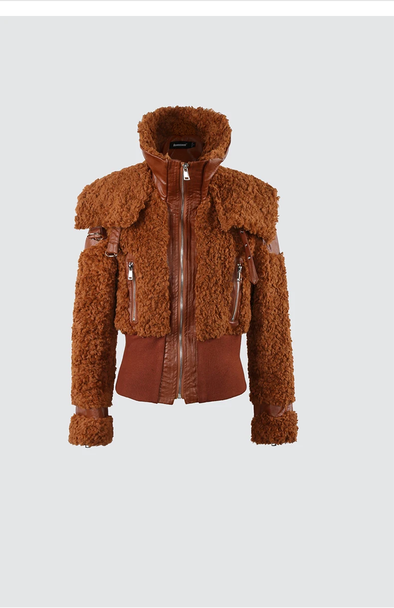 Nerazzurri Autumn Winter Chic Warm Pu Leather Patchwork Faux