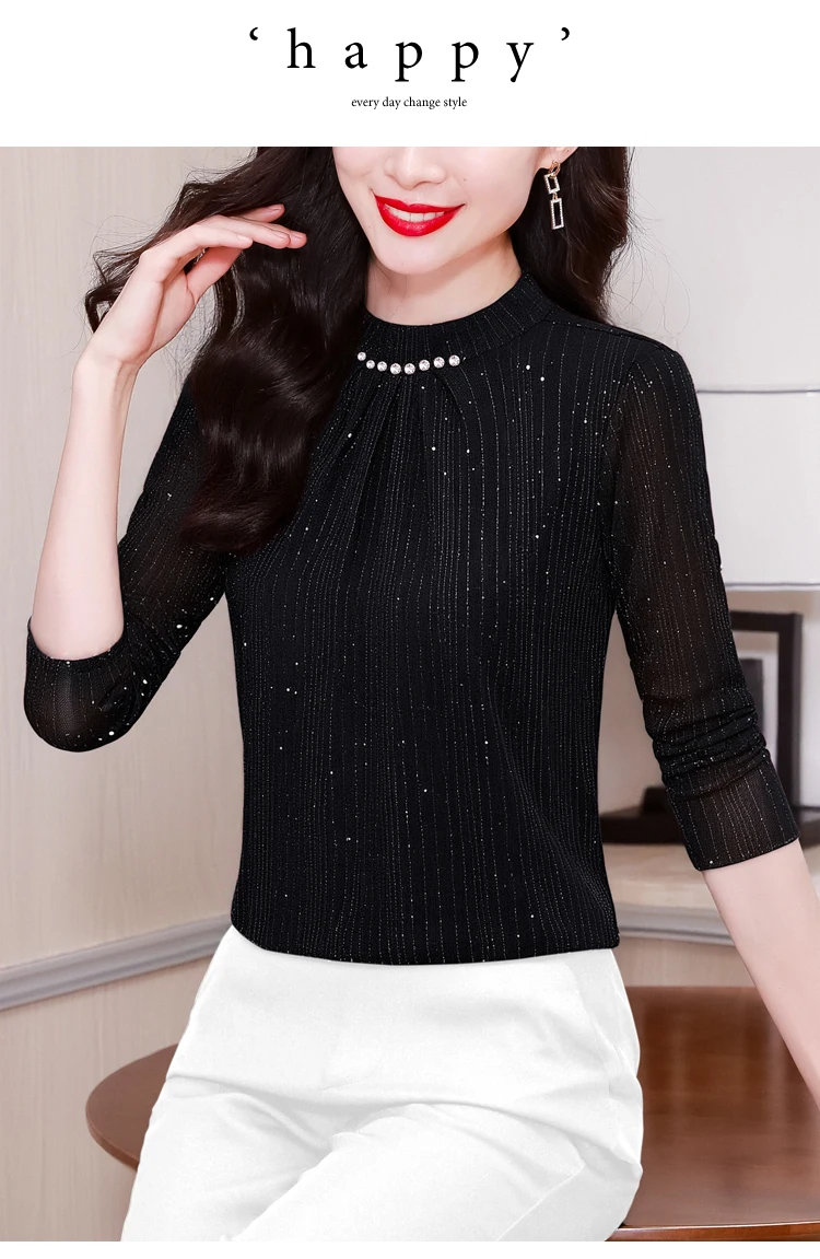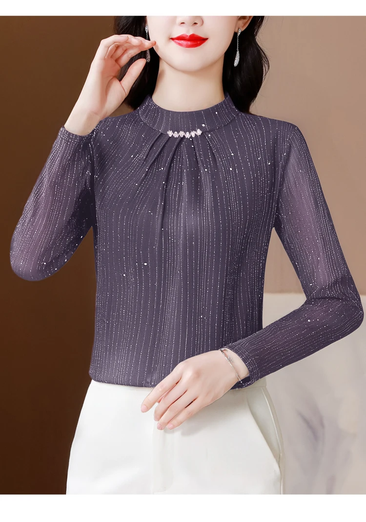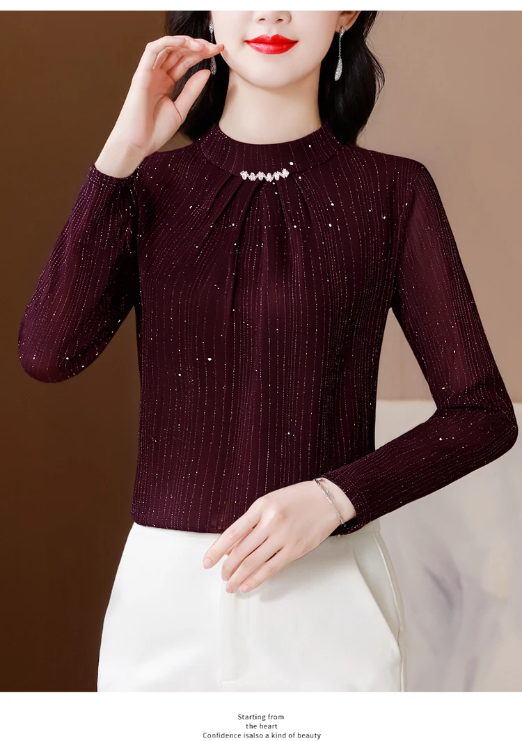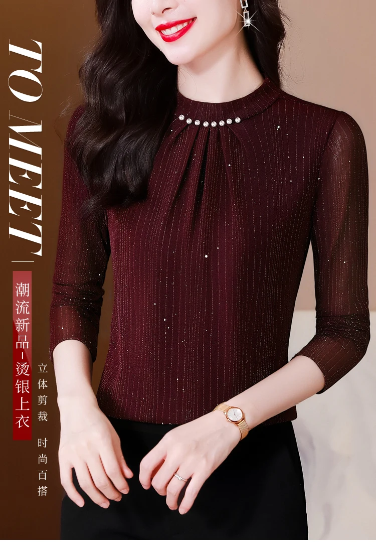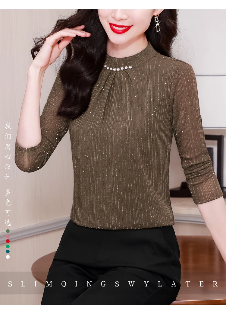 New 2025 Autumn Winter Korean Fashoin Round Neck Bright Silk