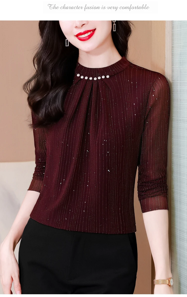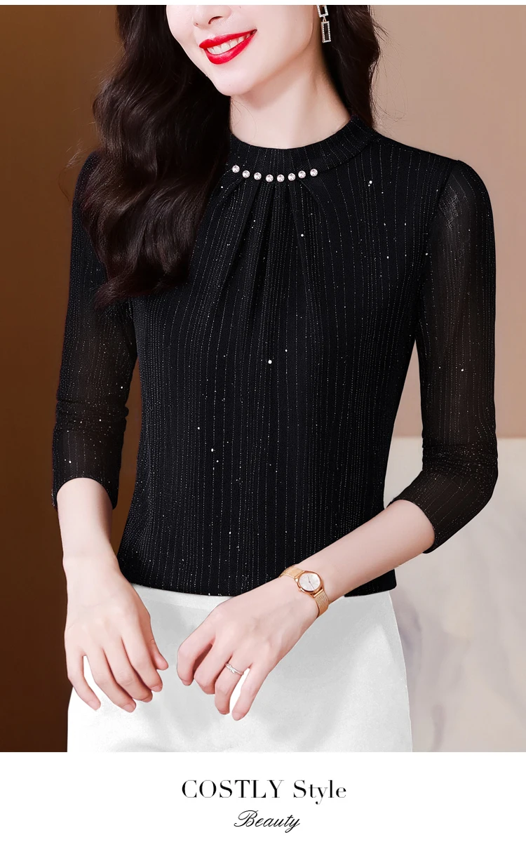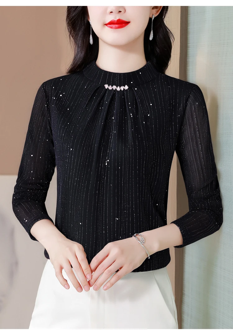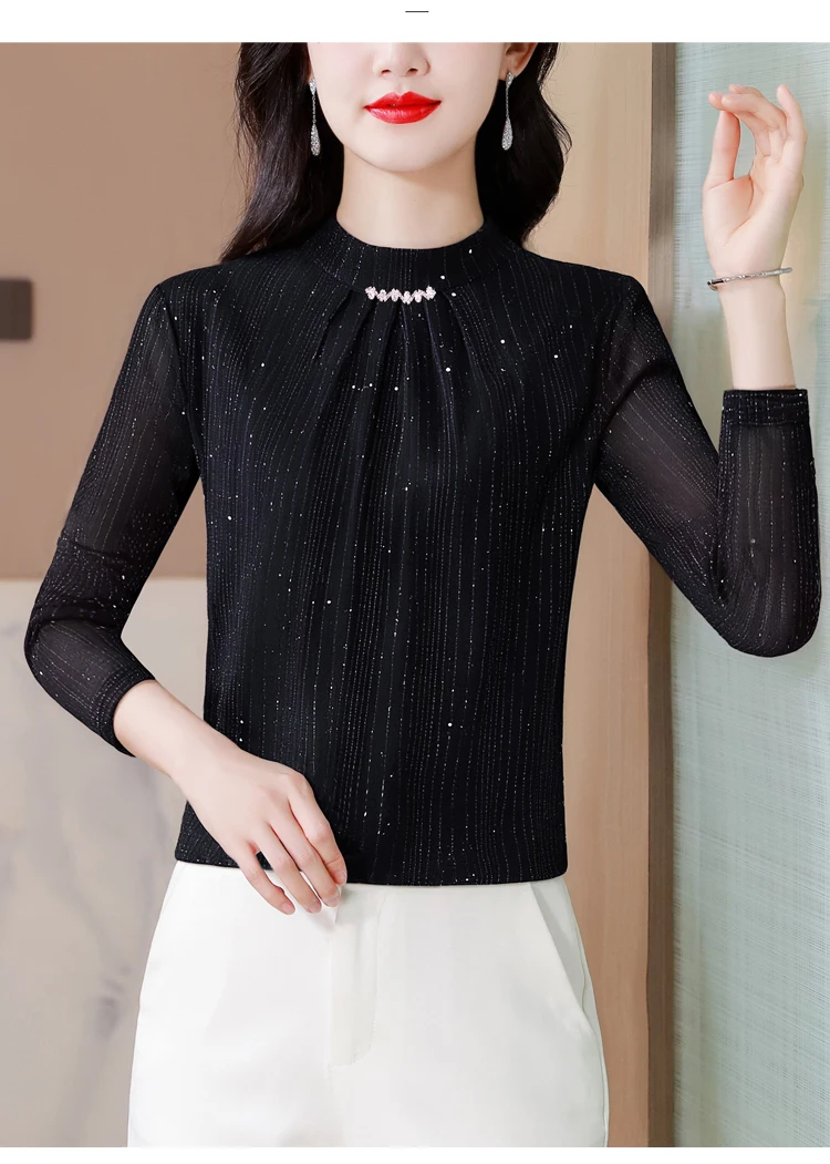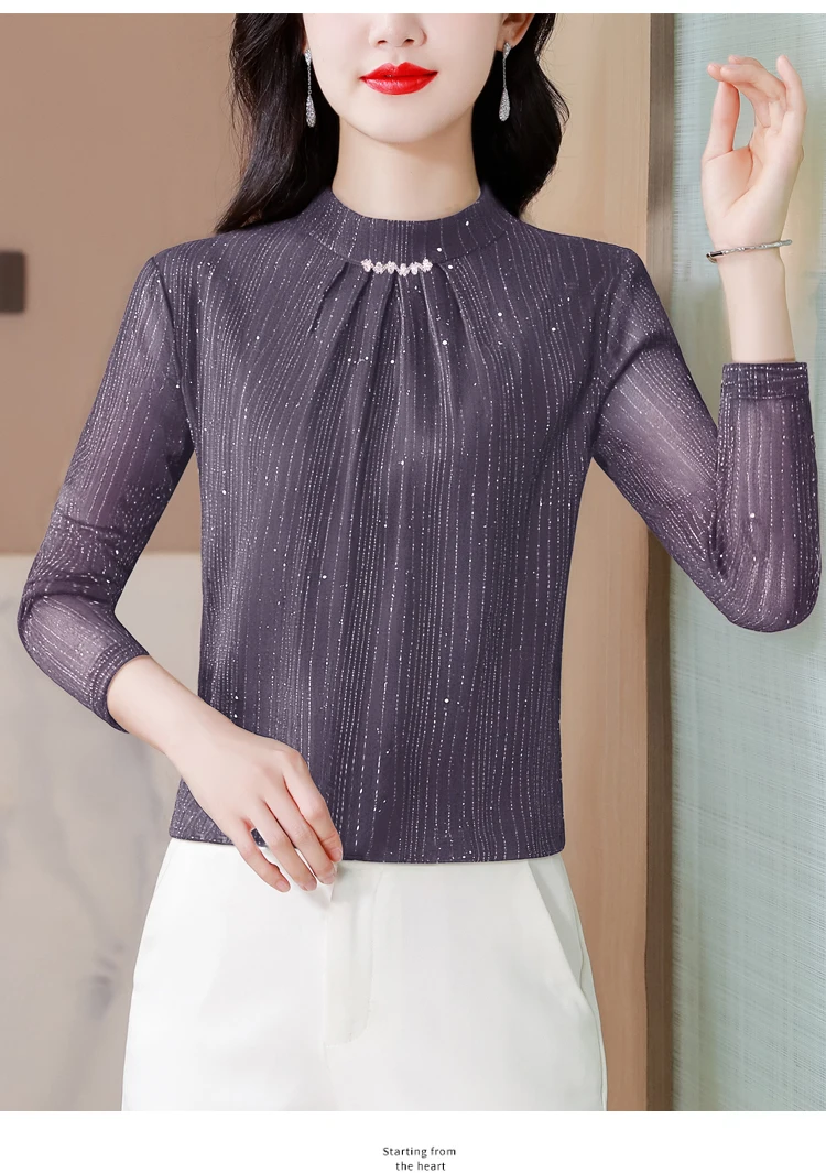 New 2025 Autumn Winter Korean Fashoin Round Neck Bright Silk