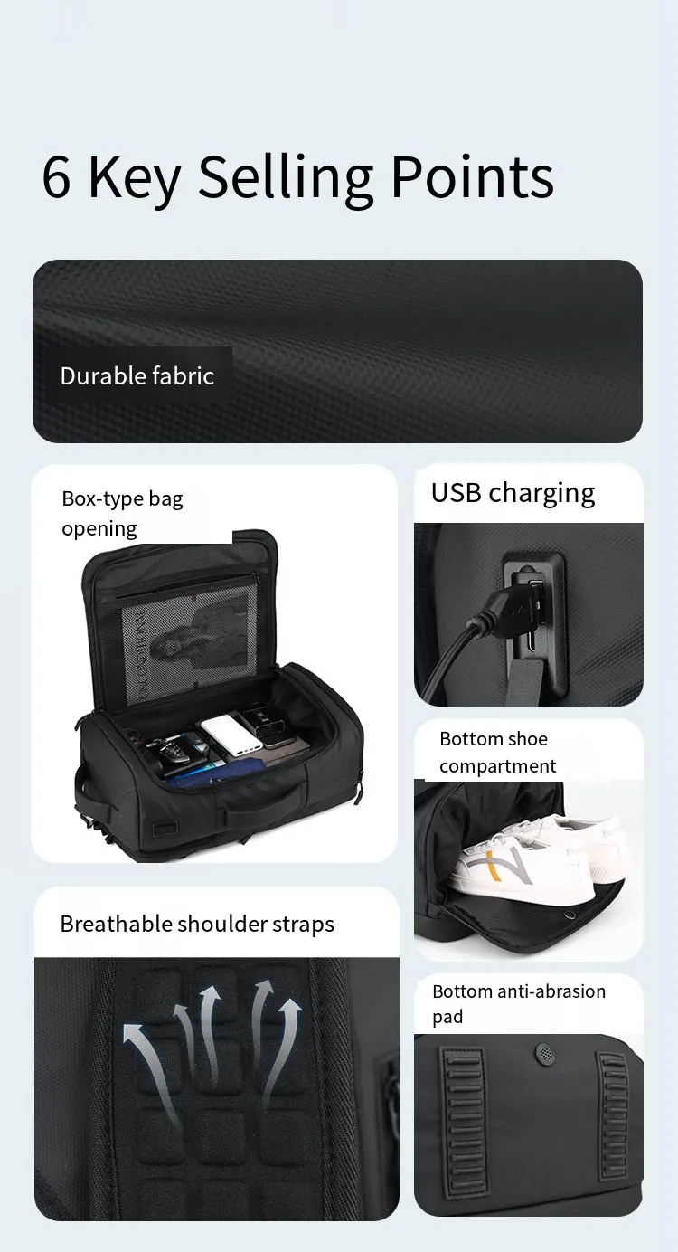 New Box-Type Open Pocket Backpack, Independent Shoe Bag