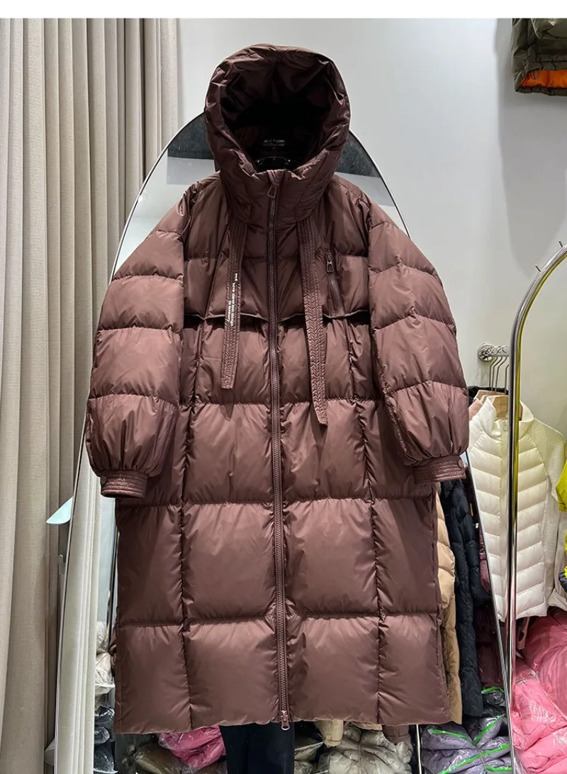 New Winter Hooded Over The Knee Puffer Coat Women Thicken