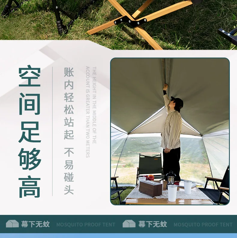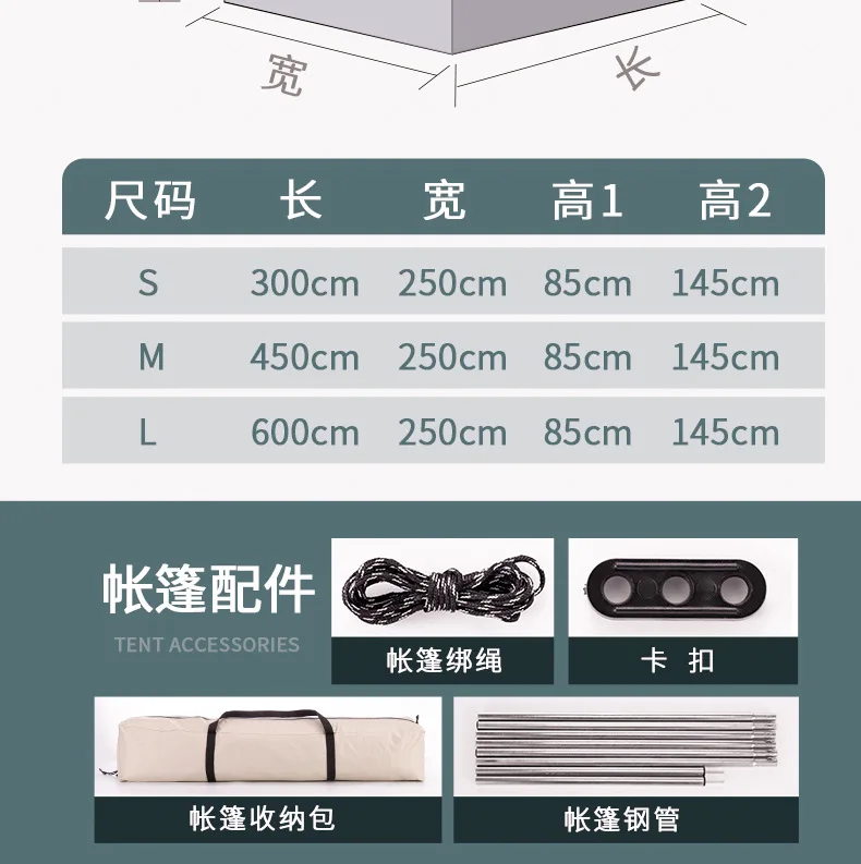 Size: Standard 2.0m x 2.0m (for 2-person),Large 3.0m x 2.5m (for family use)