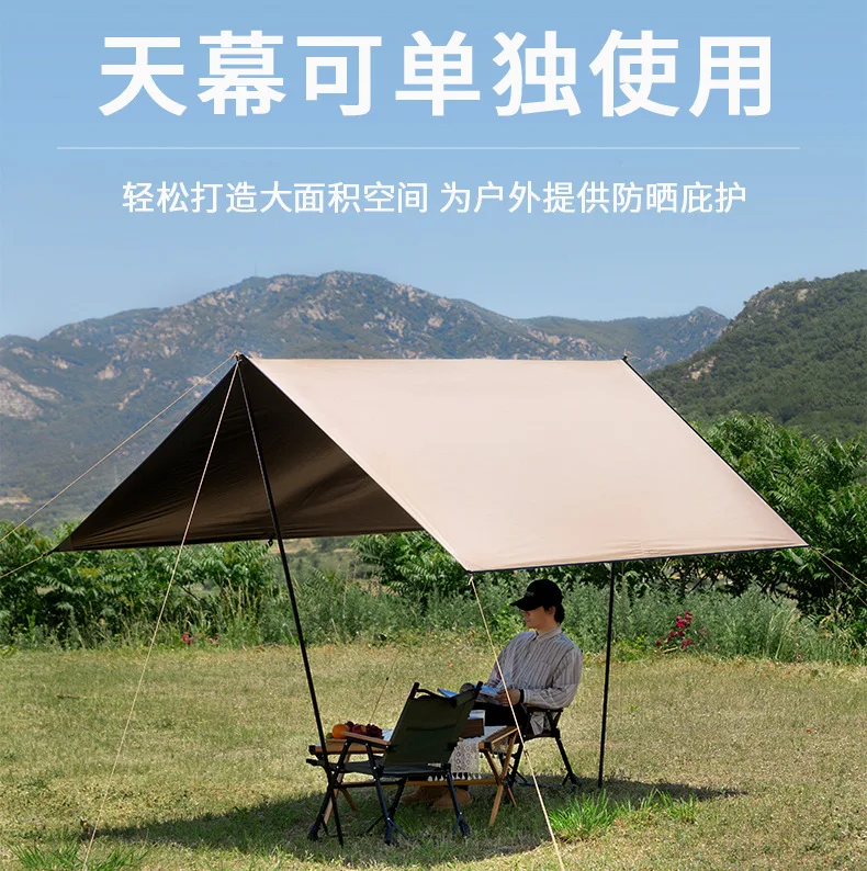 Product Description – Camping Sunshade Canopy for Outdoor Use Enhance your outdoor experience with our premium camping sunshade canopy , a must-have for anglers, campers, hikers, and beachgoers. Designed to provide reliable shade and UV protection, this portable camping shelter keeps you cool and comfortable in the sunniest conditions. Made from UPF 50+ UV protection fabric and coated with waterproof PE bottom , this fishing sunshade tent offers dual functionality — shielding you from both the scorching sun and sudden summer showers. The sturdy aluminum alloy frame ensures high wind resistance and long-lasting durability, making it ideal for use on grass, sand, or rocky terrain. Whether you're setting up at the lake, beach, garden, or campsite, this outdoor sunshade canopy is quick and easy to install. Its one-touch folding design allows for compact storage and portability, and it comes with a carry bag , stakes, and wind ropes for added stability. Key Features: -UPF 50+ Sun Protection Fabric -Waterproof PE Floor Liner – Rain Resistant -Windproof & Reinforced Aluminum Frame -Easy Setup – One-Touch Folding Design -Portable & Foldable – Perfect for Travel -Multi-functional Use – Ideal for Fishing, Camping, Picnic, Beach & Garden -Ventilation Mesh Panels – Keeps You Cool -Includes Carry Bag & Installation Accessories Perfect for: Summer camping trips Fishing sessions under strong sunlight Beach outings and family picnics Outdoor events, festivals, and hiking Garden relaxation and backyard use This camping sunshade canopy is not only great for shade but also doubles as a fishing sun shelter , beach umbrella tent , or garden patio cover . Available in multiple sizes (3x3m, 4x4m, 5x5m) and colors (green, beige, camouflage), it’s the perfect outdoor camping gear addition to your adventure kit.