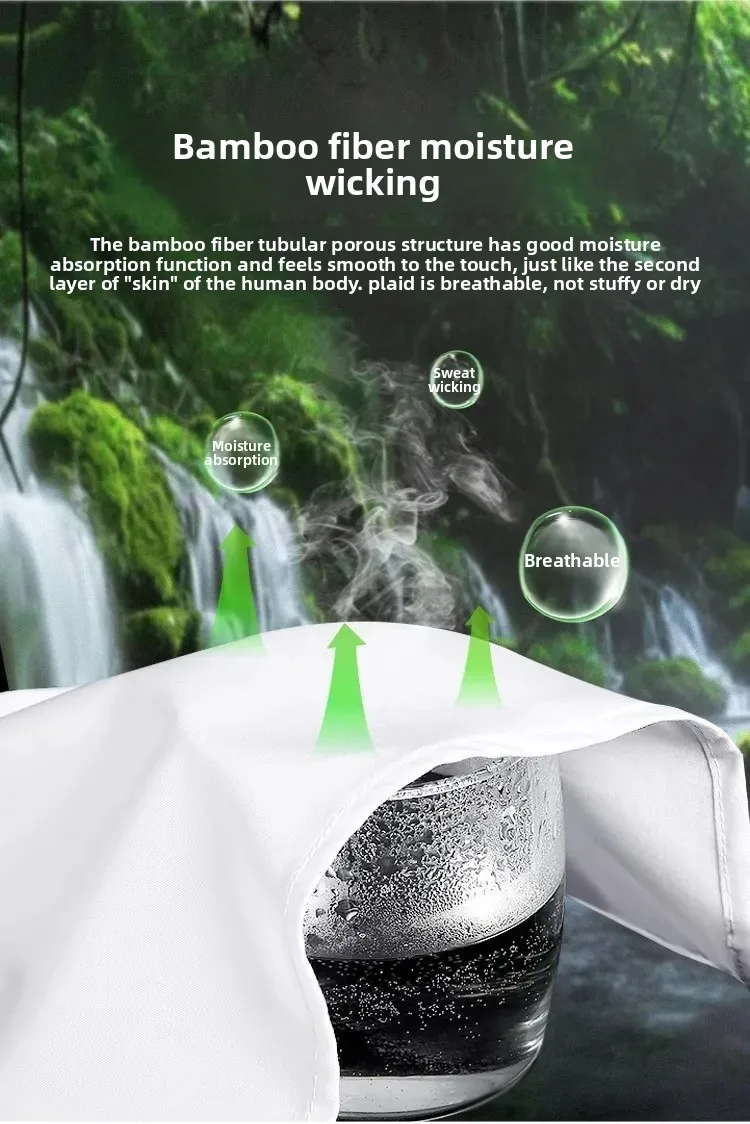 • Bamboo Fiber Material : Crafted from bamboo fiber, this shirt offers a soft, breathable feel, perfect for all-day comfort.