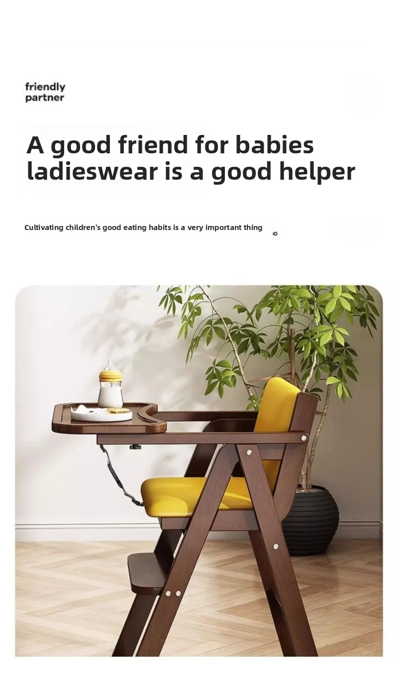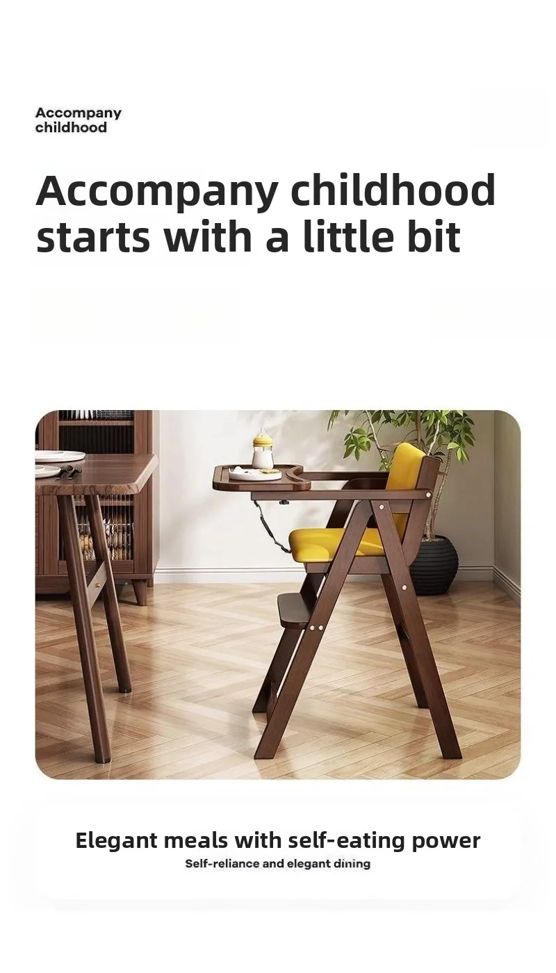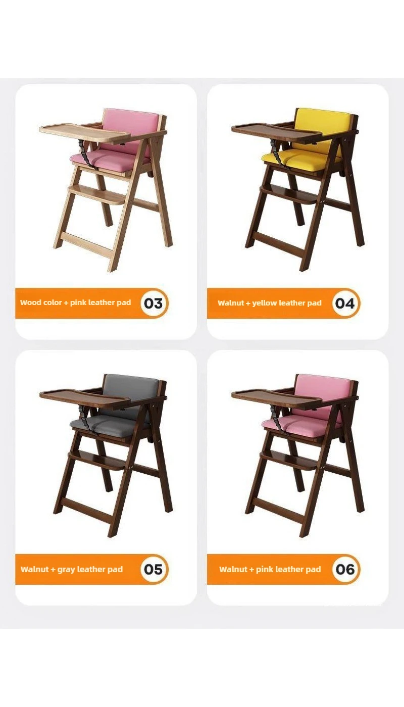 Pure Solid Wood Children’s Dining Chair Baby Foldable Dining
