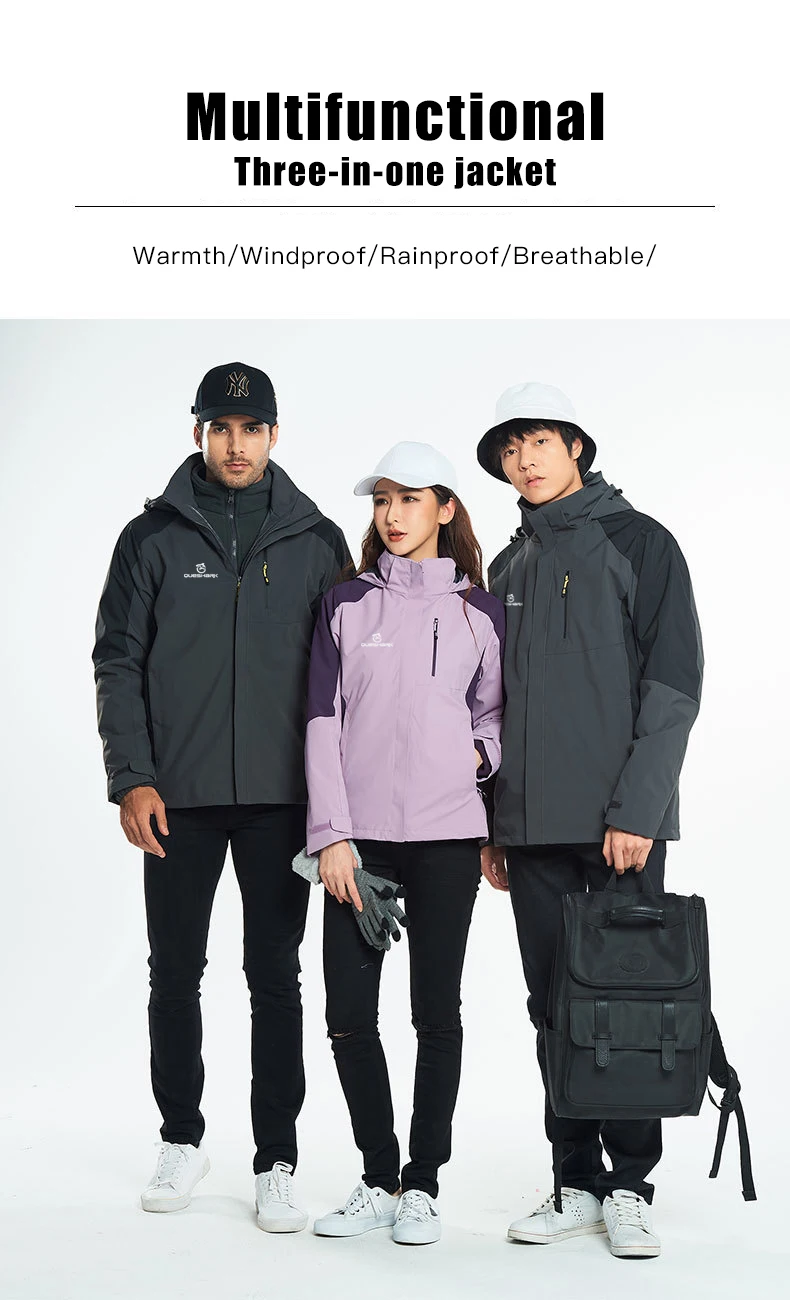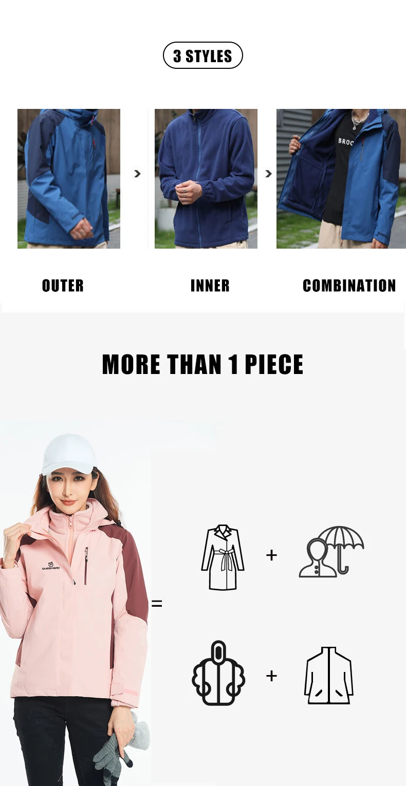Queshark 3 in 1 Set Women Removable Fleece Jacket Waterproof