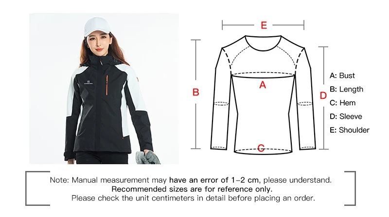 S size :Bust(A):102cm Length(B):63cm Shoulder+Sleeve:68cm Height :150cm-160cm Weight:45KG-50KG
