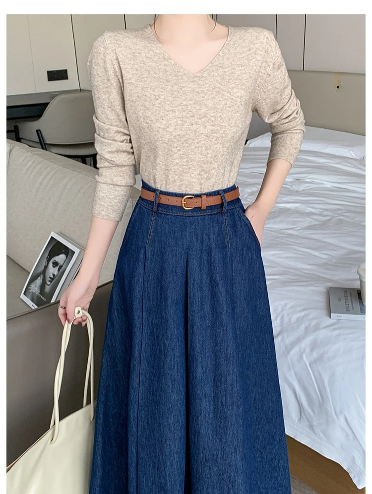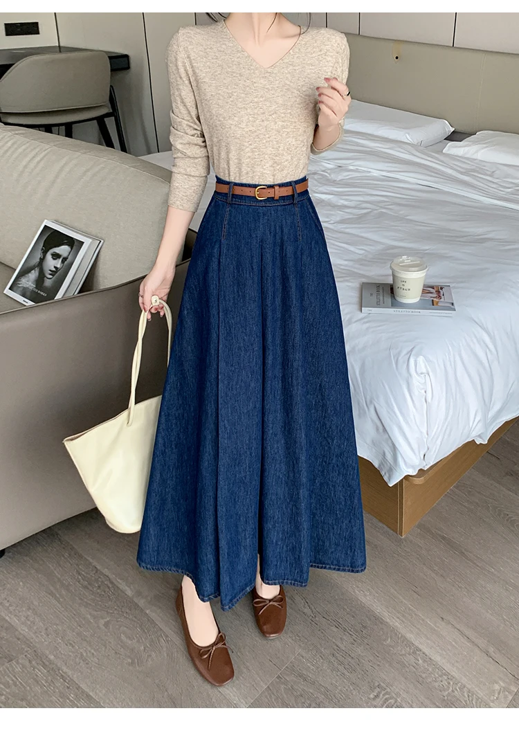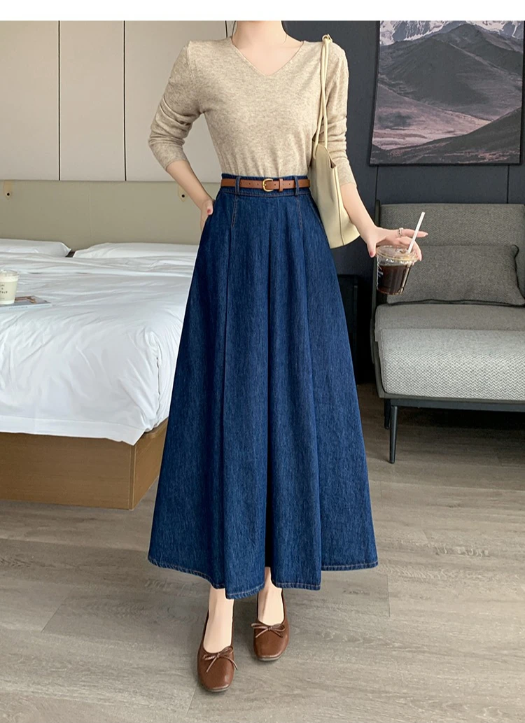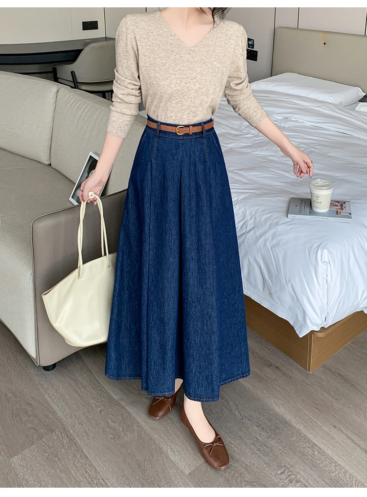 Seoulish Autumn High Waist Denim Women's Umbrella Skirts