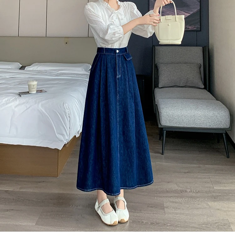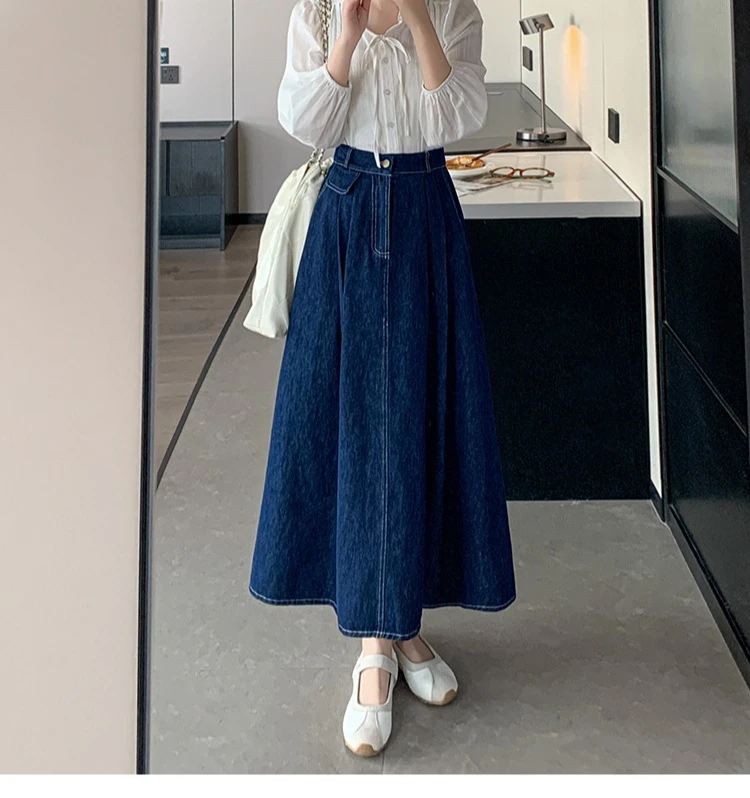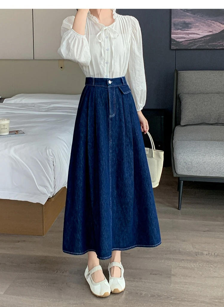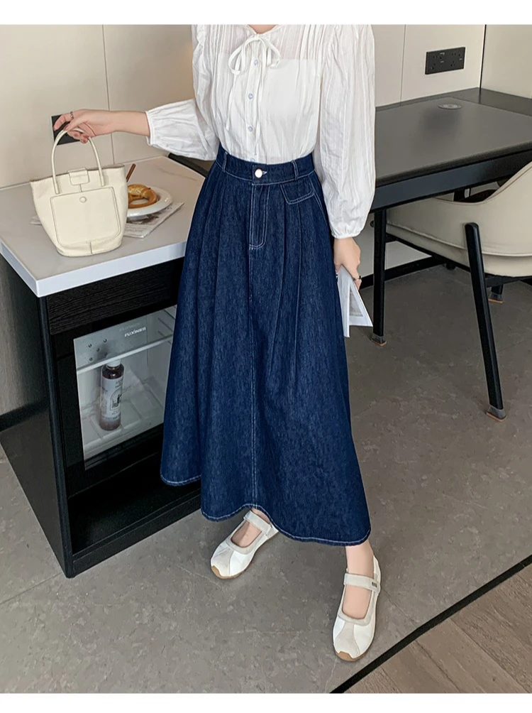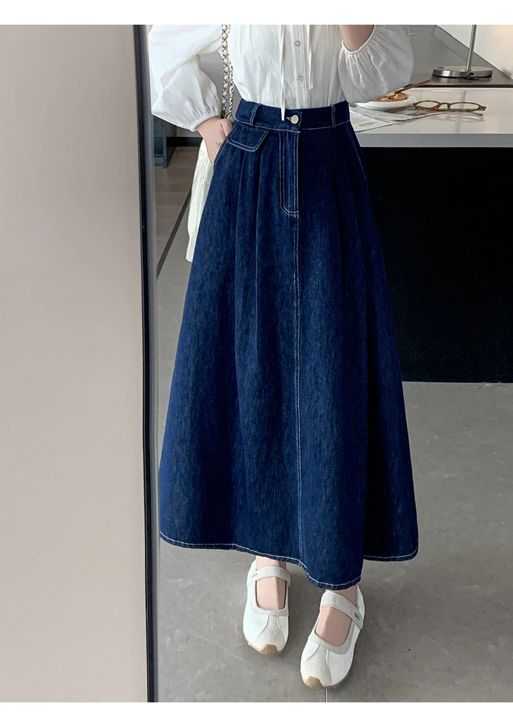 Seoulish High Waist Vintage Denim Women's Umbrella Skirts