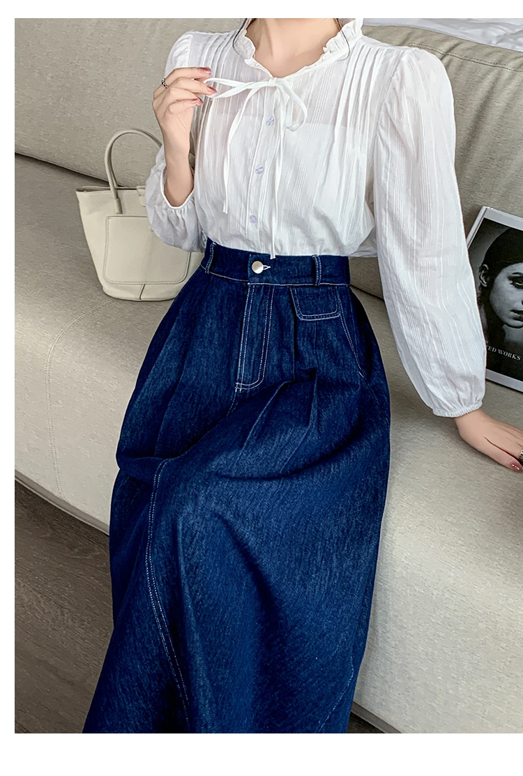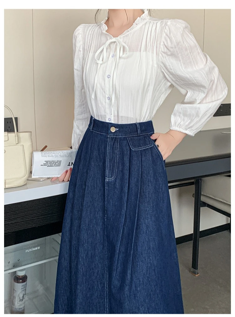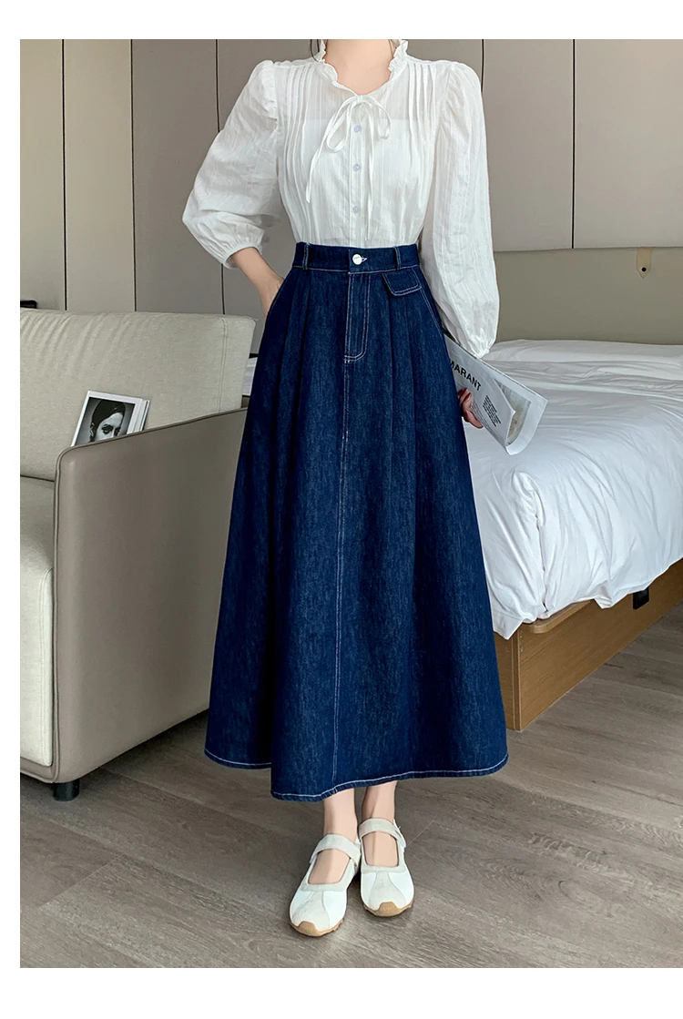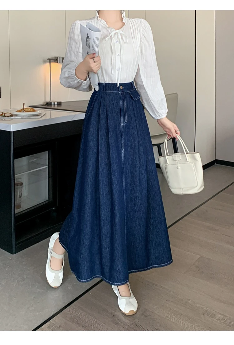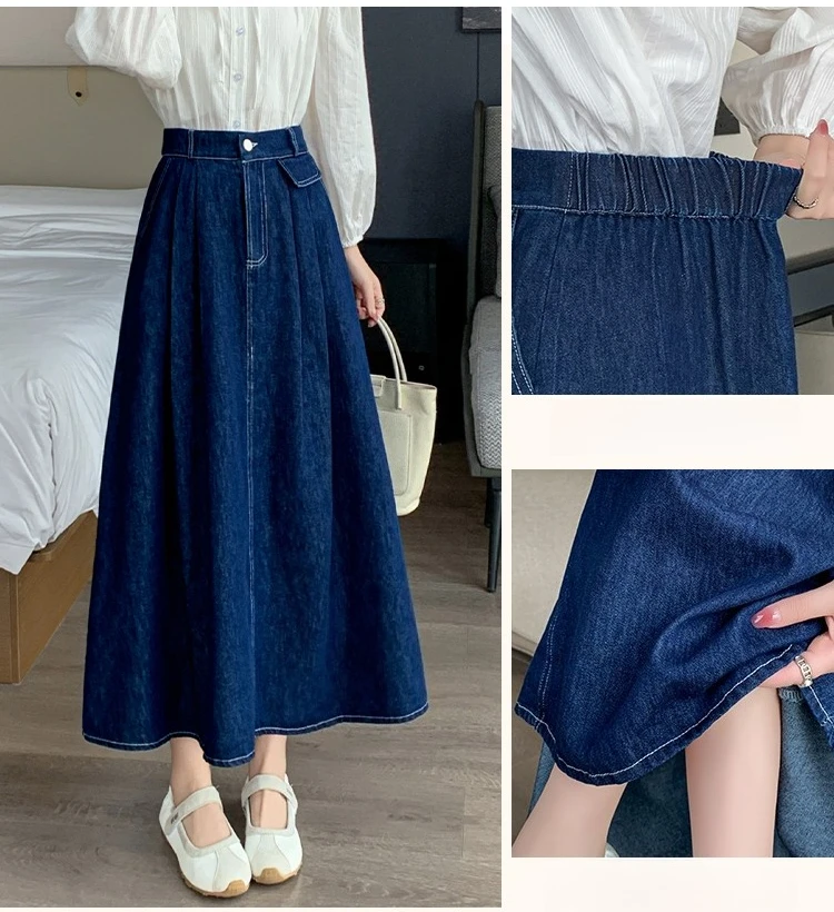 Seoulish High Waist Vintage Denim Women's Umbrella Skirts
