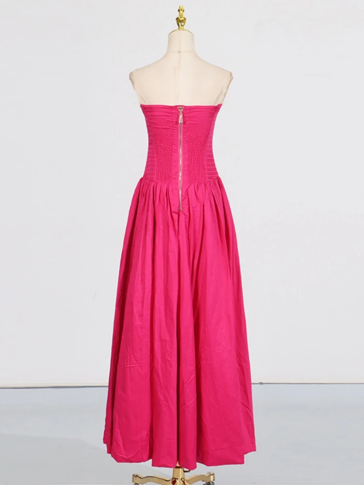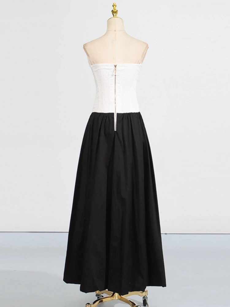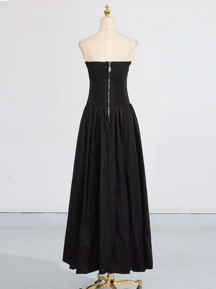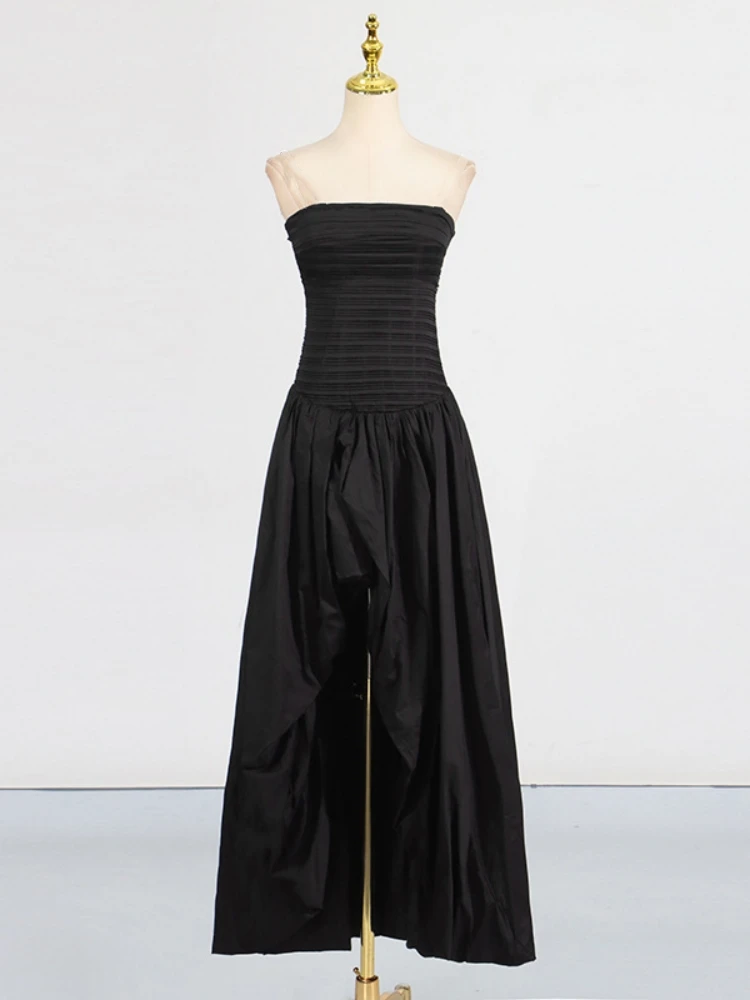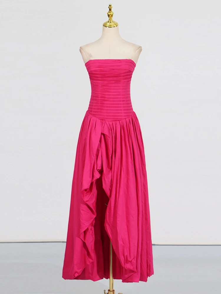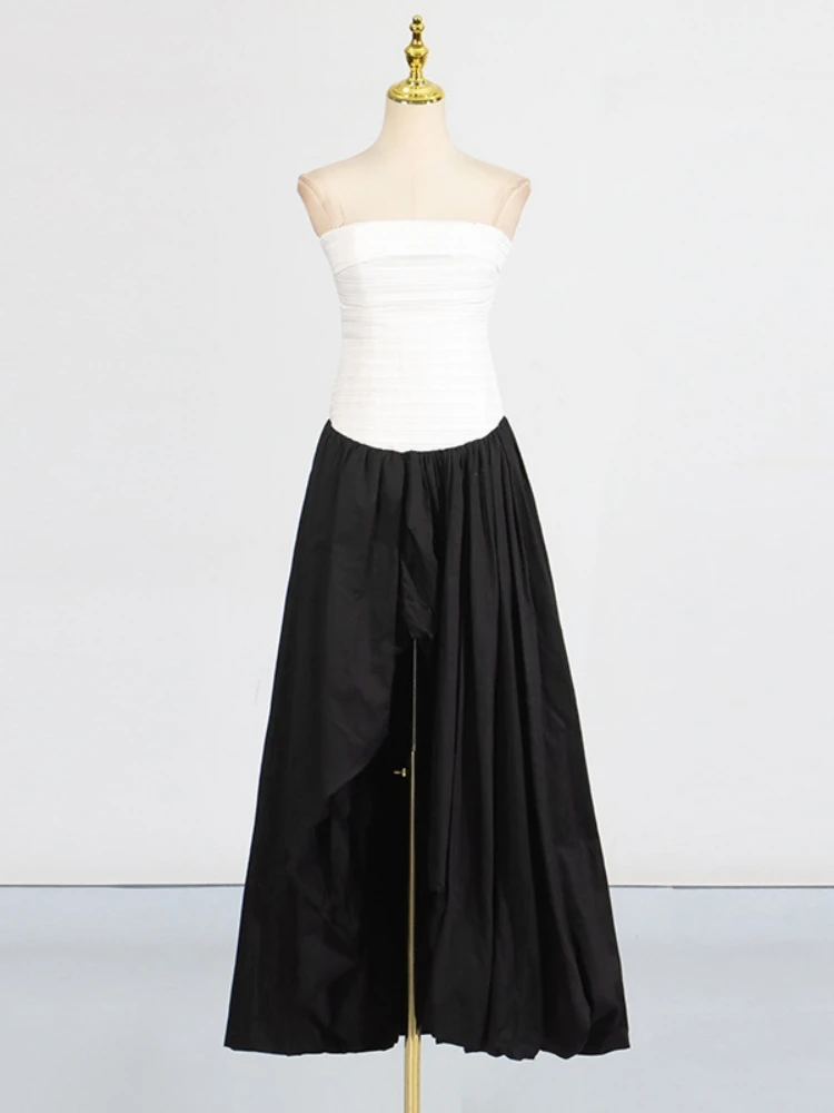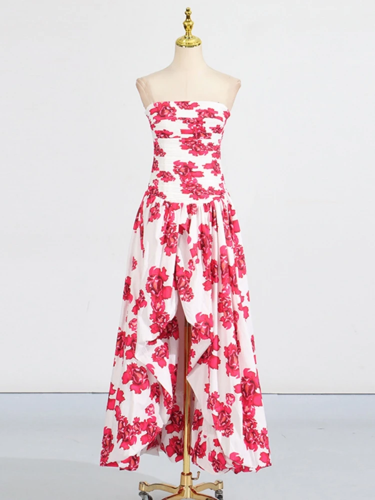 Sexy Strapless Printed Split Deign Long Bubble Dress Women