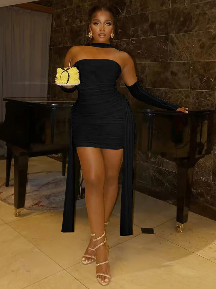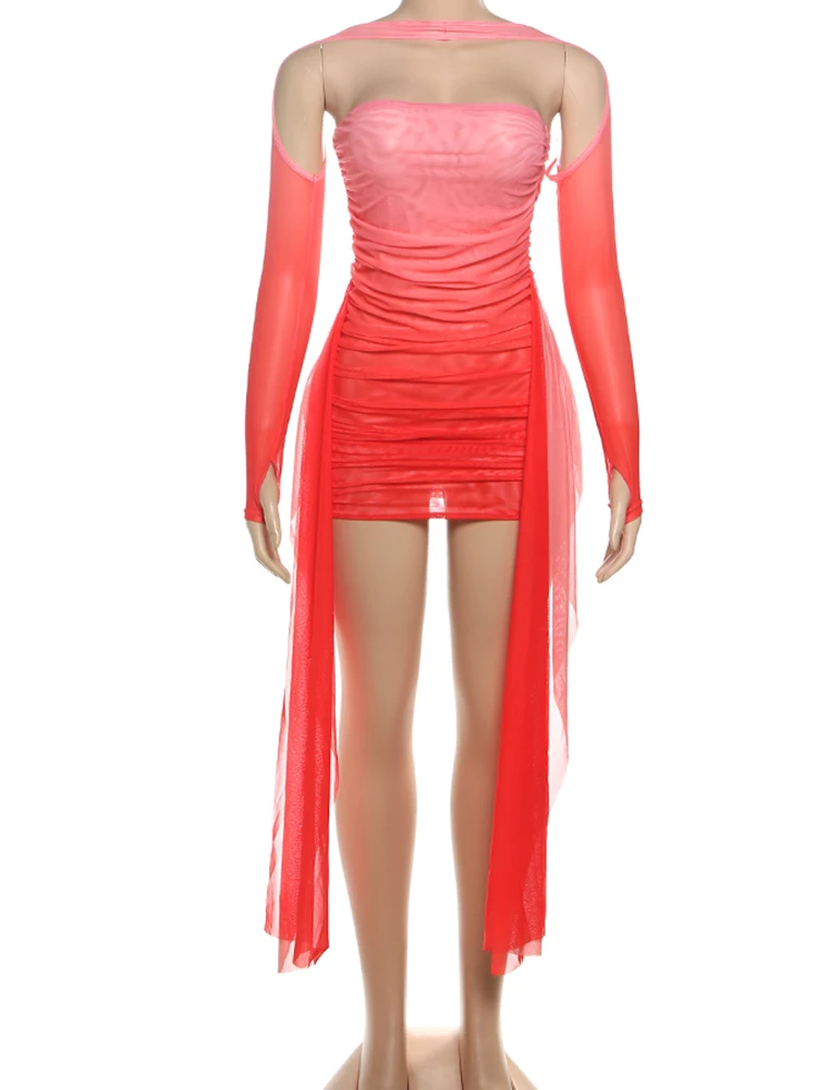 Sisterlinda Mesh Simple Mini Dress Fashion Solid Strapless