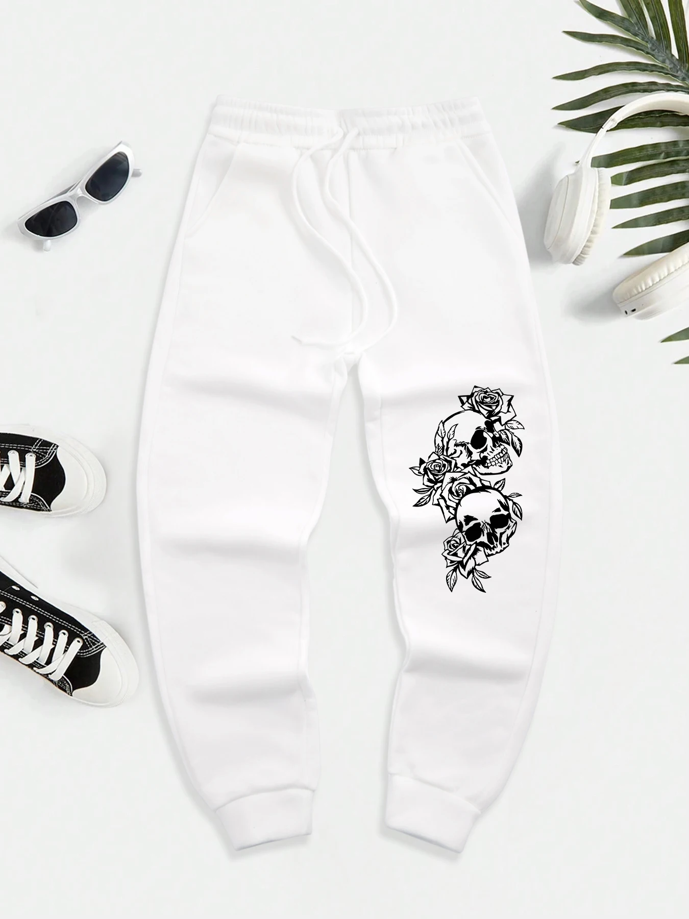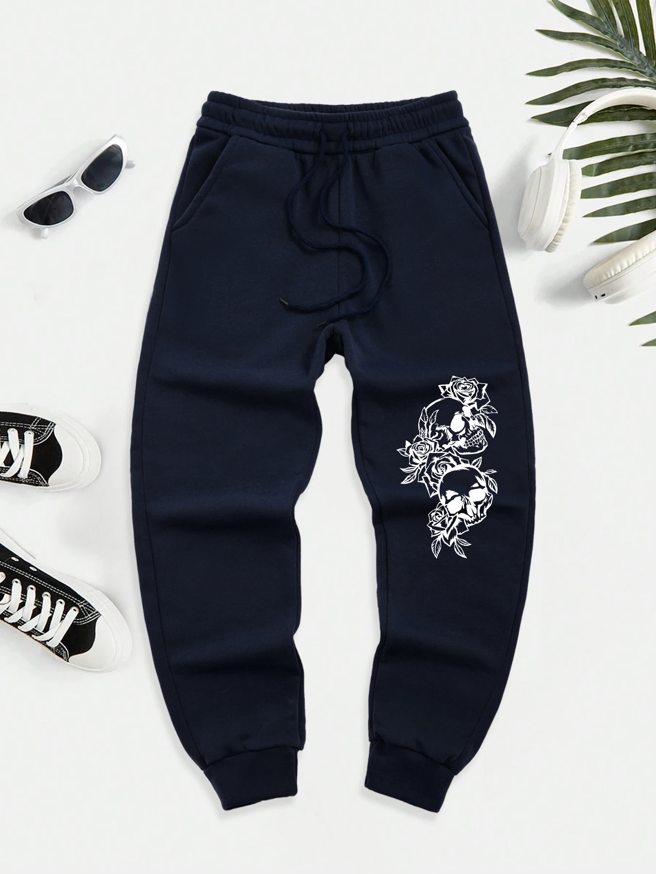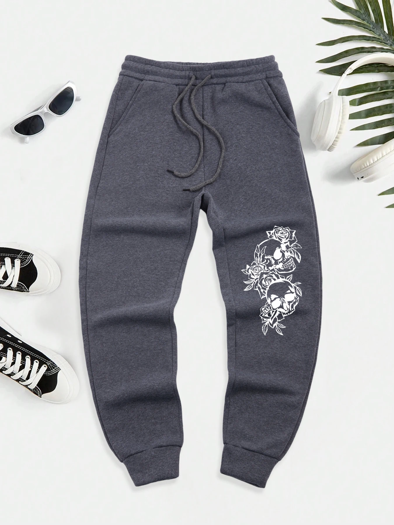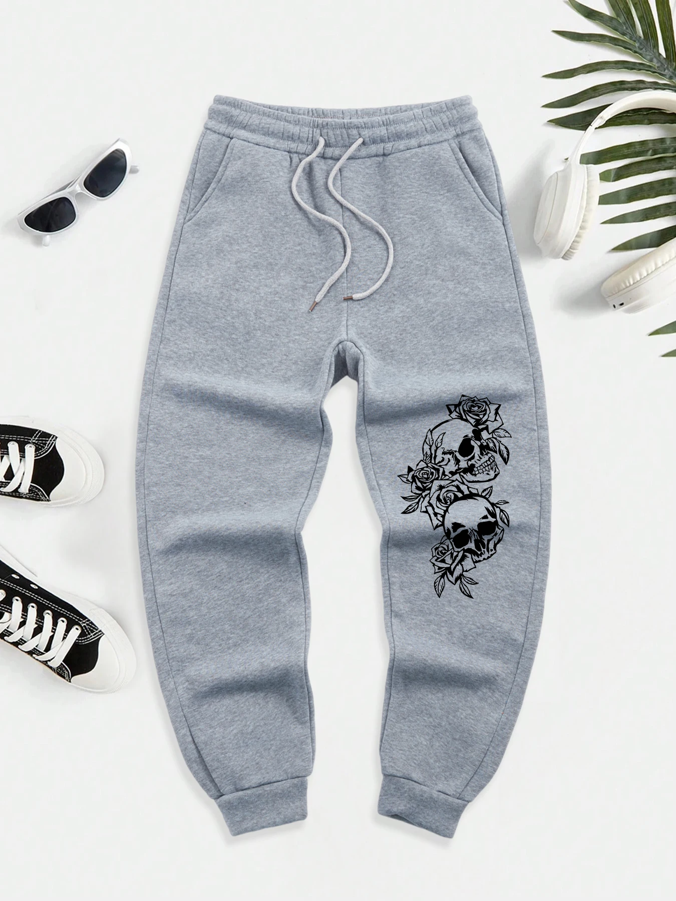 Skeleton Surrounded By Roses Printed Warm Men Long Pant