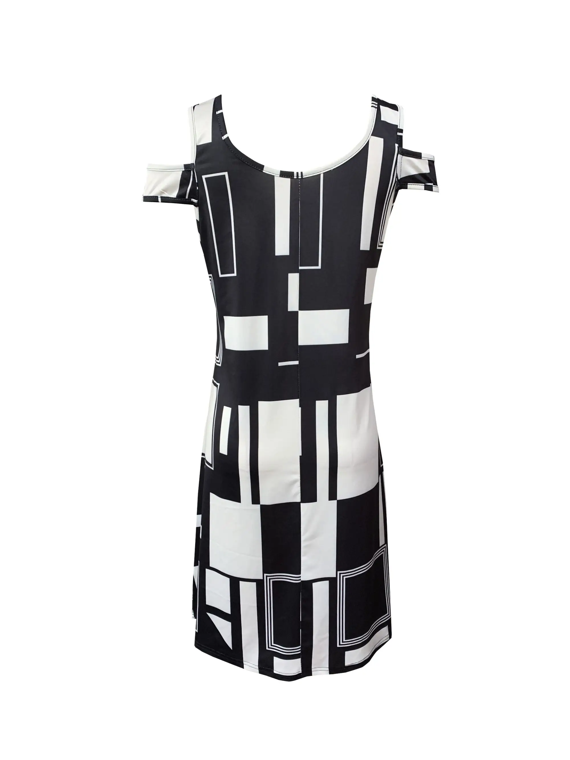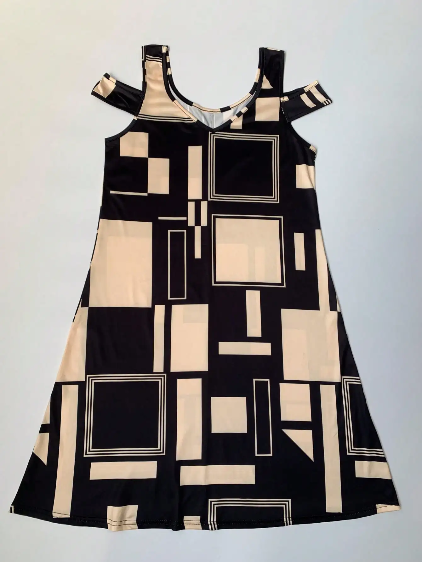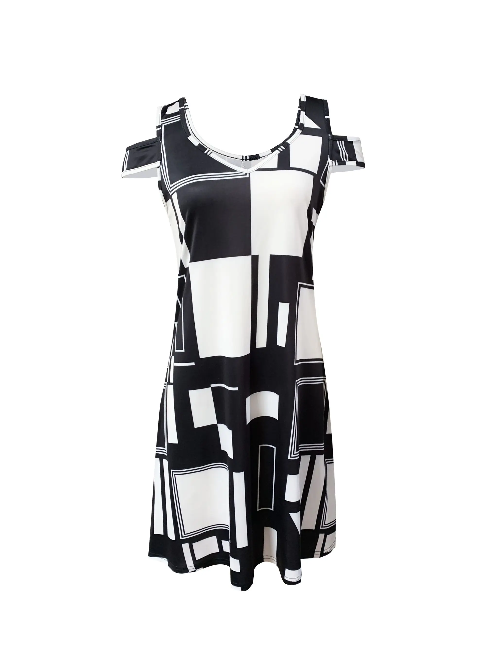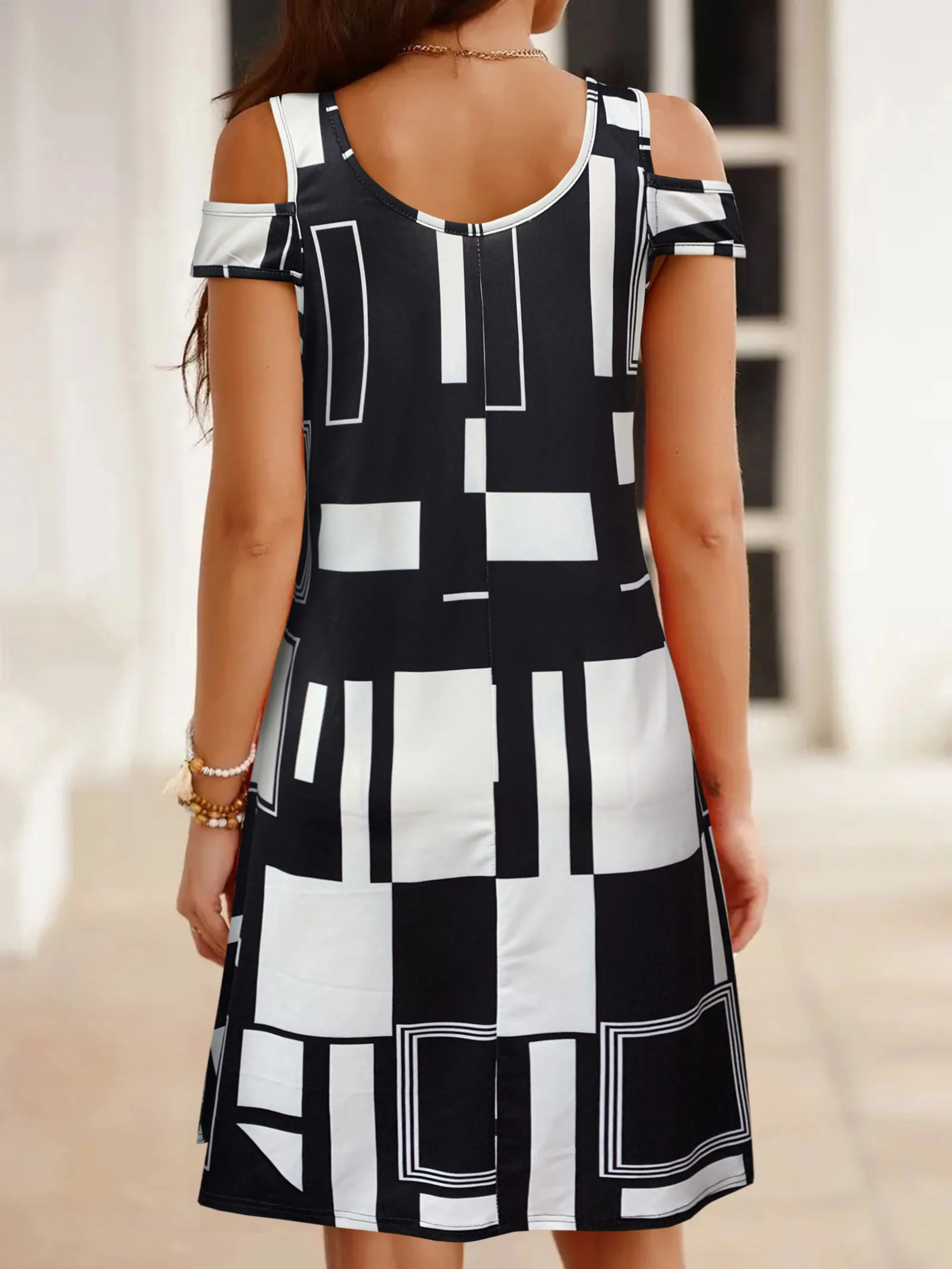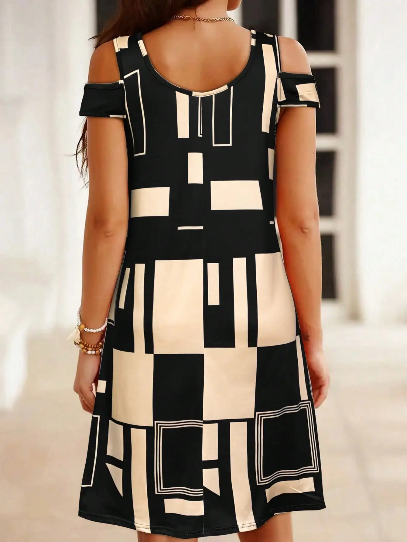 Summer Geometric Pattern Off-shoulder V-Neck Dress For