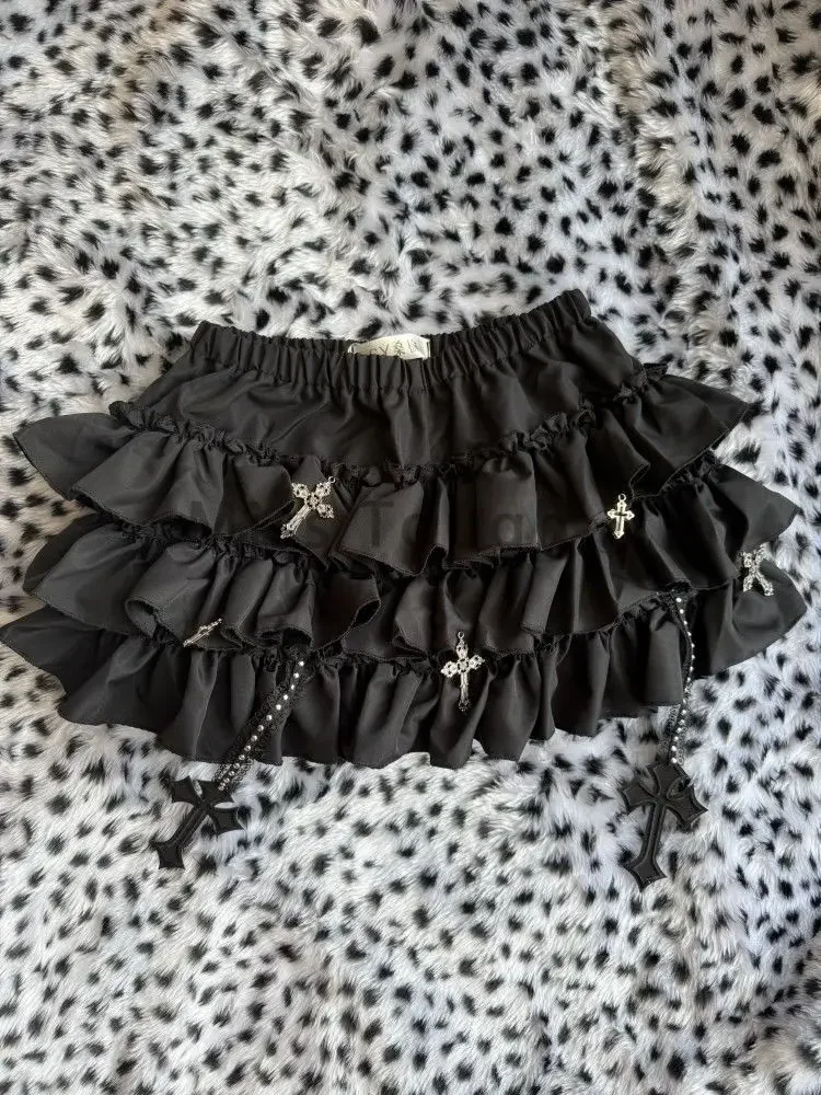 Summer Gothic Y2k Elastic Waist Cross Short Skirt Women High