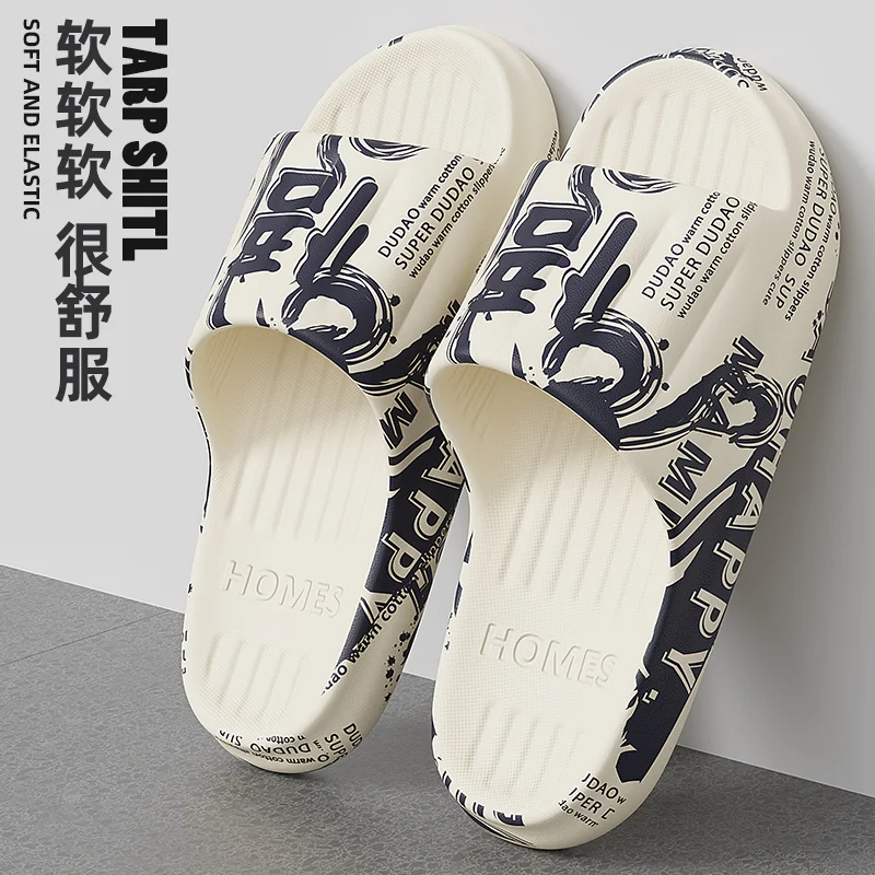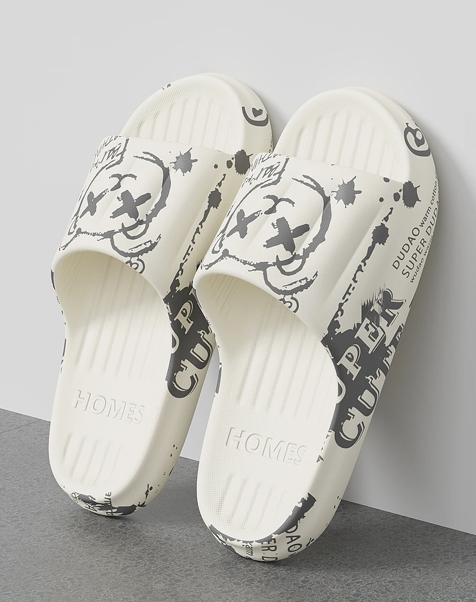 Summer Plus Size 48-49 Graffiti Bear Print Men Slippers Home
