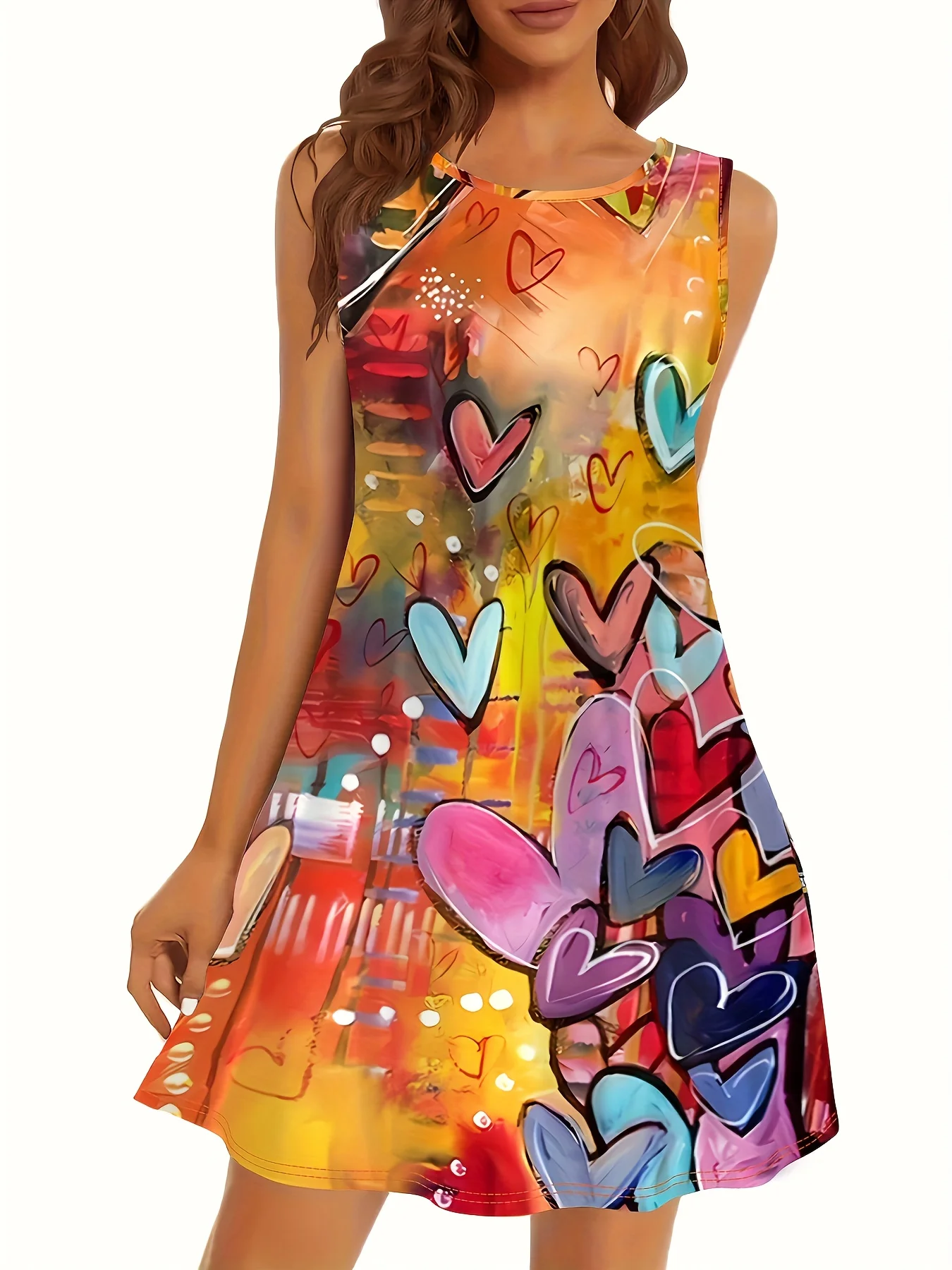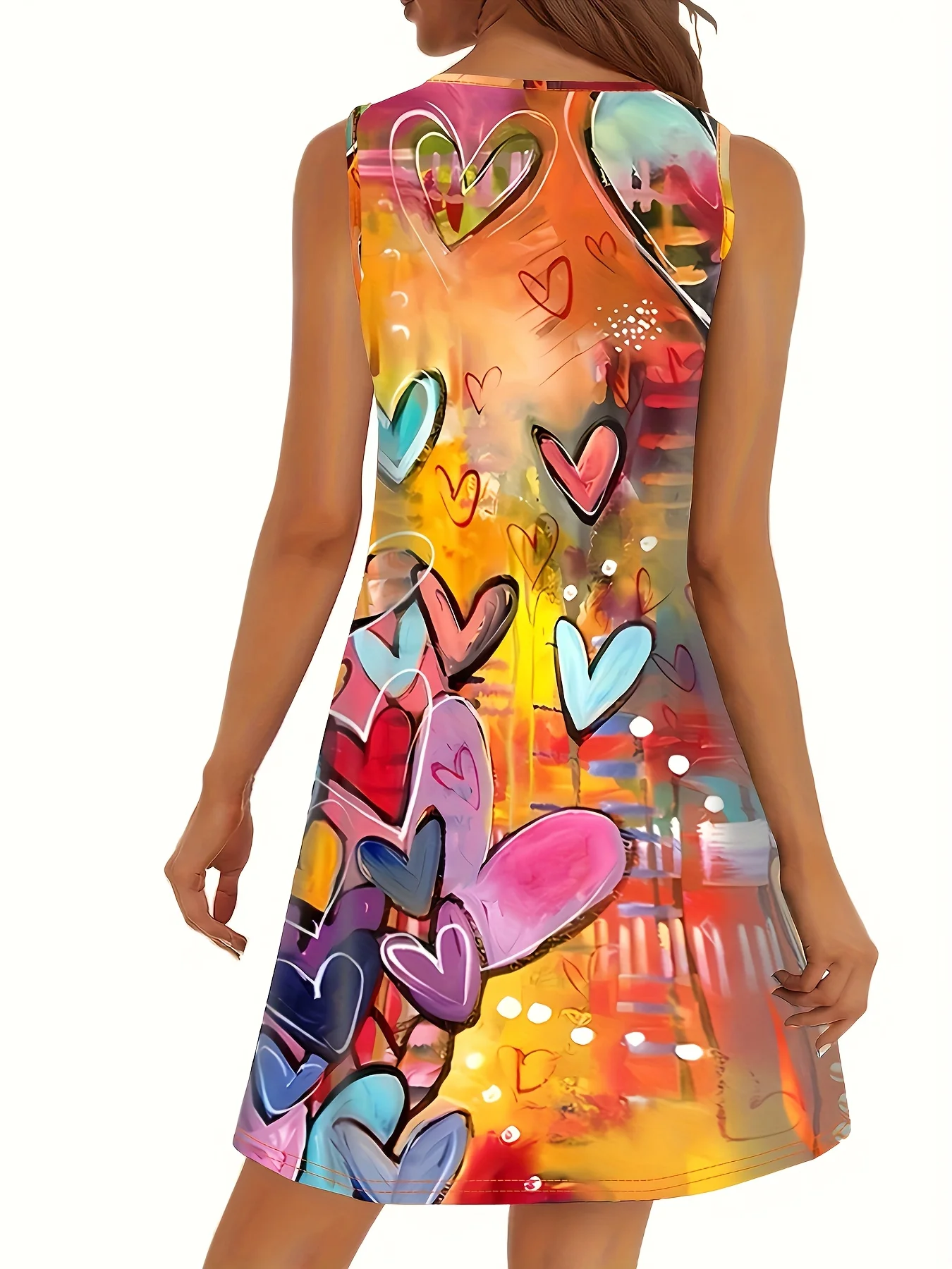 Summer Round Neck Sleeveless Elegant Love Dress Women'S
