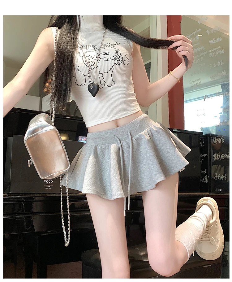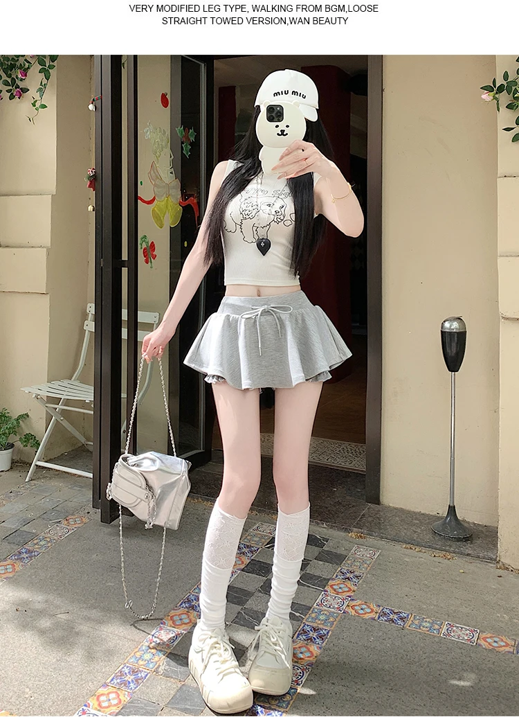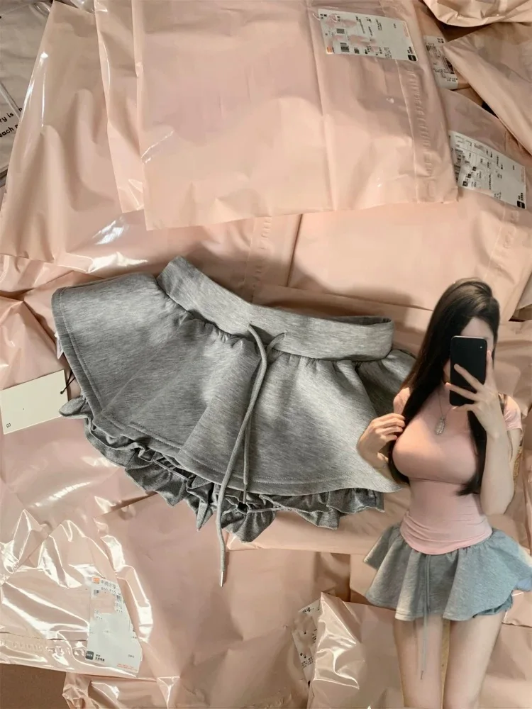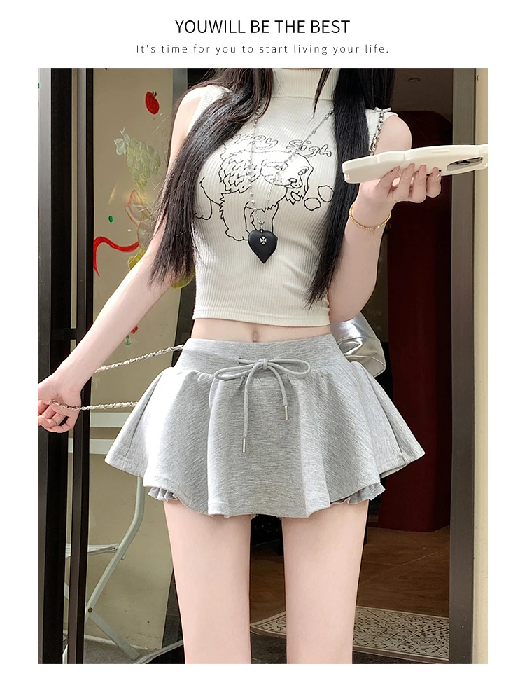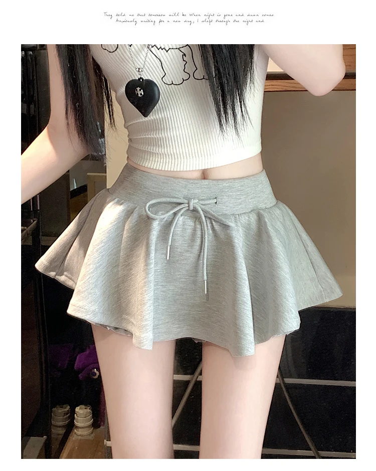 Sweet Ballet-style Grey Drawstring Skirt Women Korean