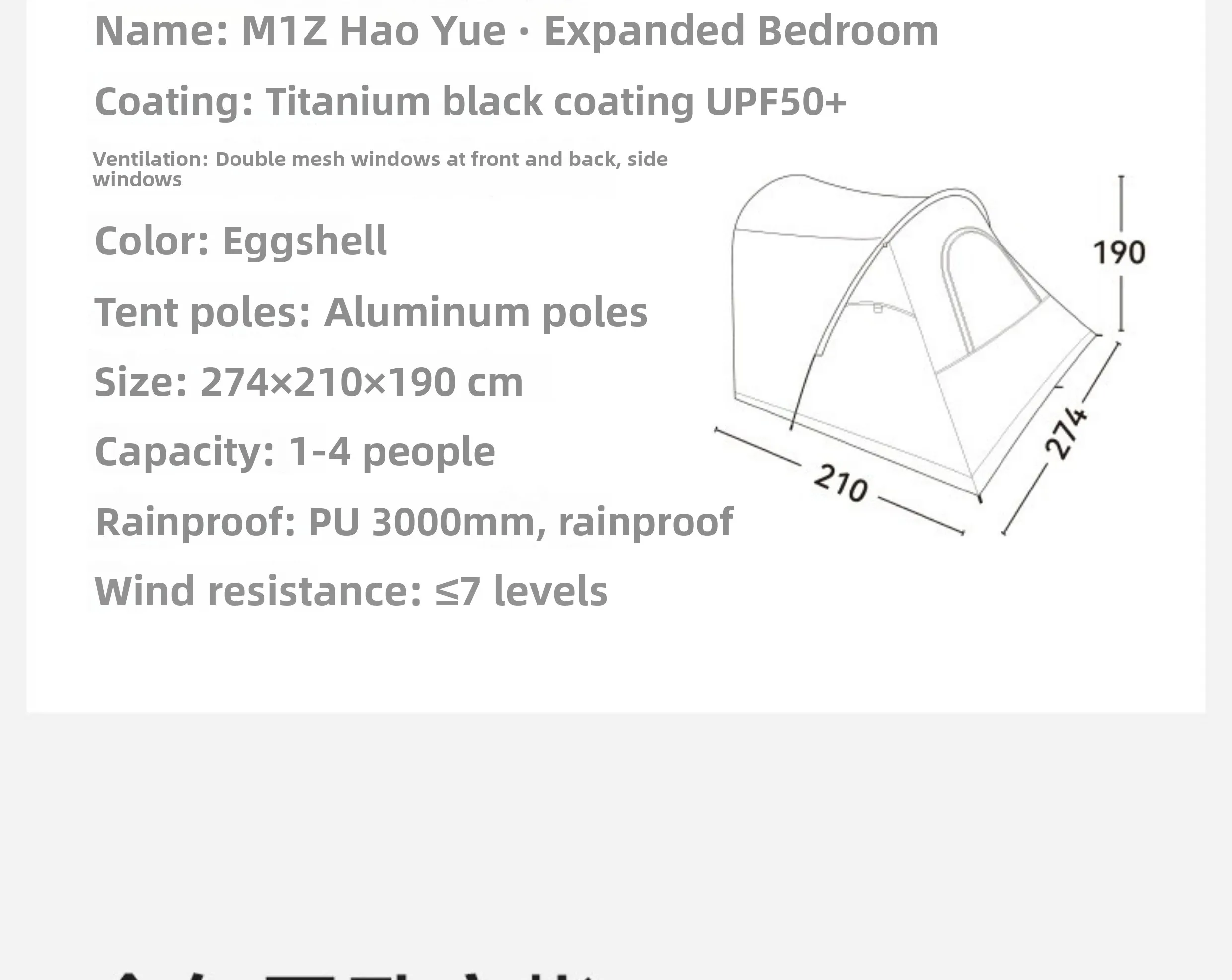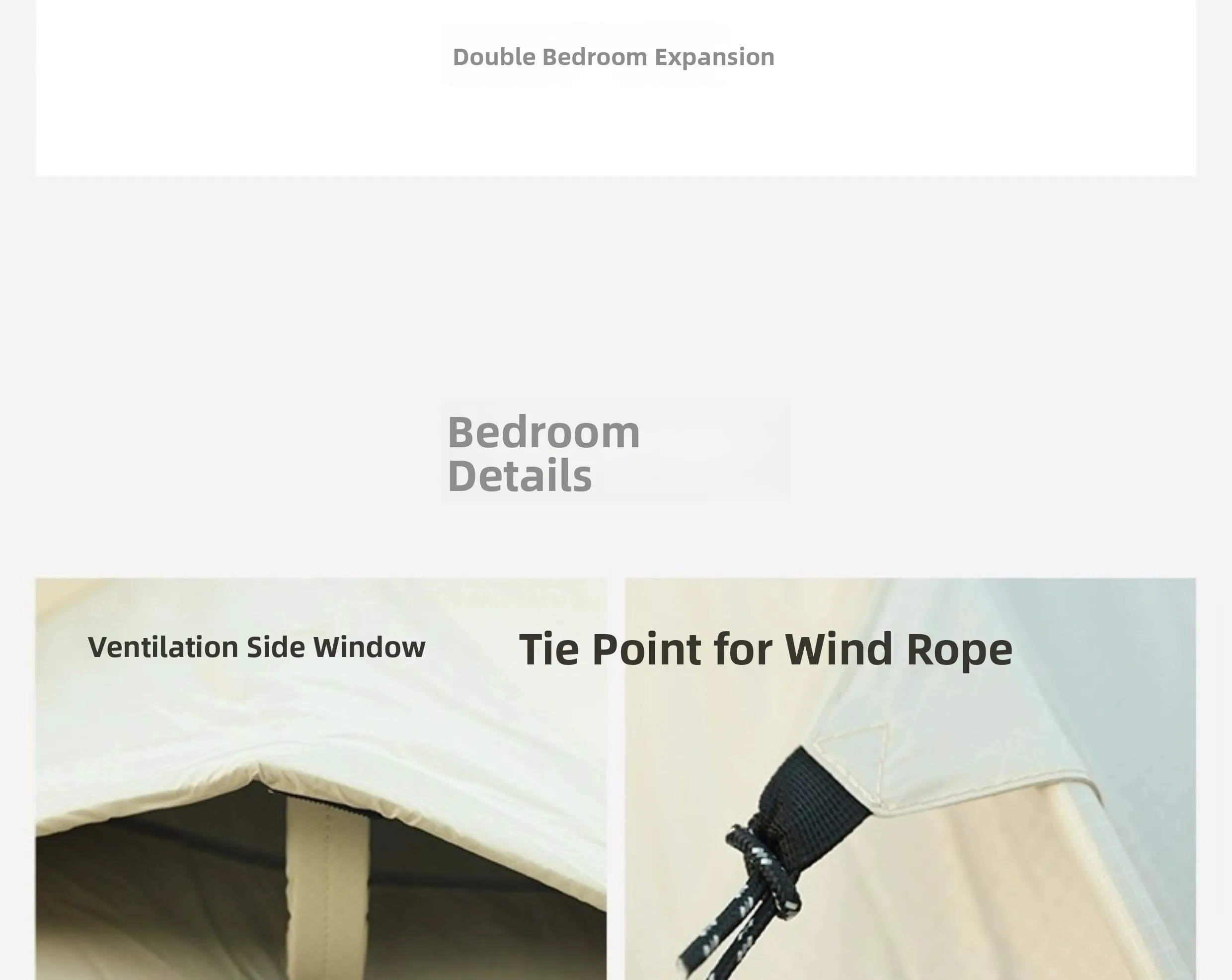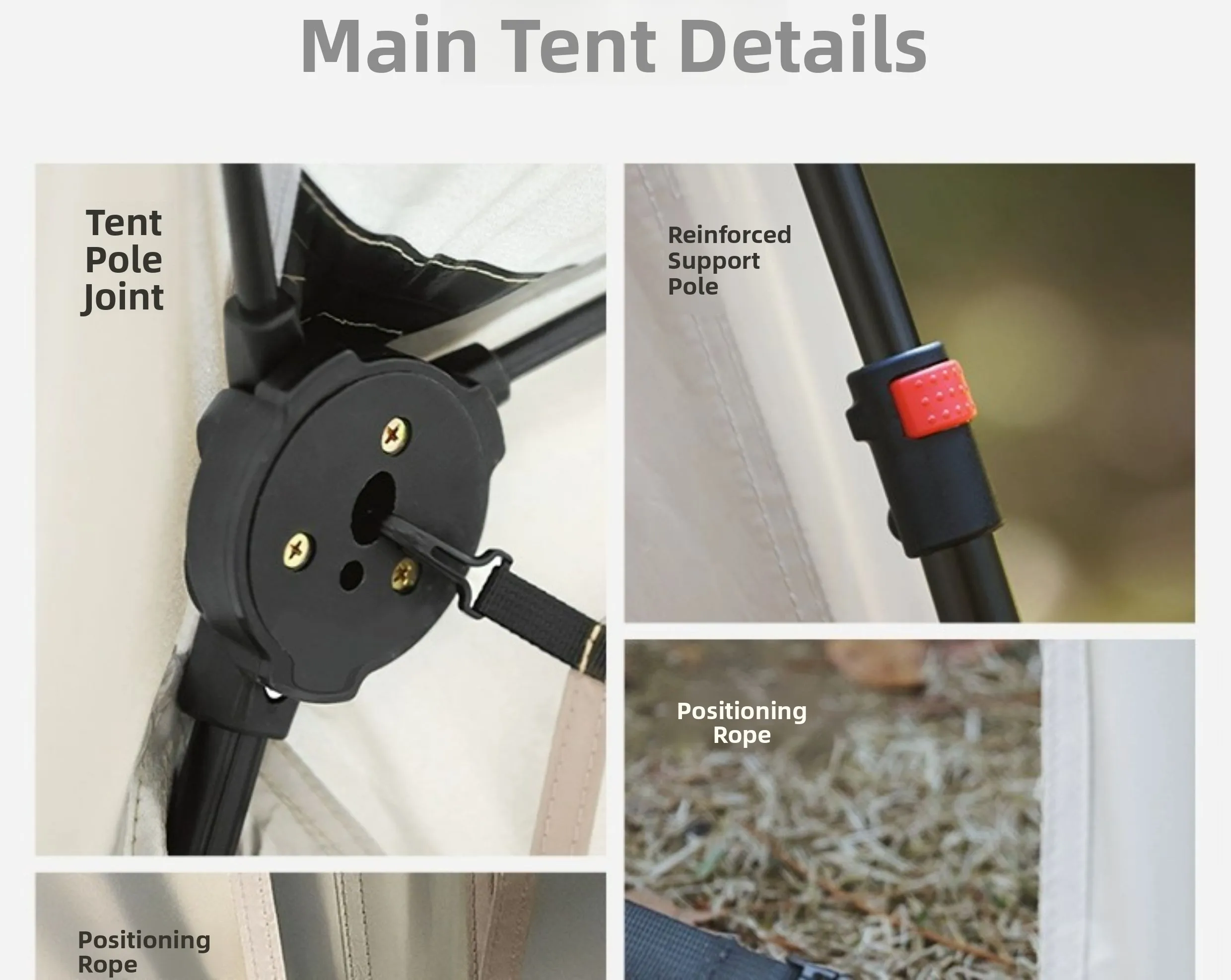 Boasting a spacious interior of 6~10㎡, this double-layer tent provides ample room for you and your family or friends to relax comfortably.