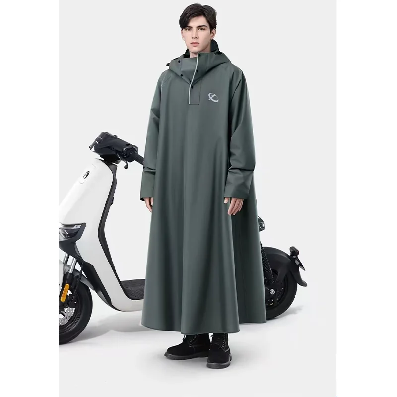 The length of the raincoat is moderate and can cover the legs, effectively preventing rainwater from entering through the legs. At the same time, the hooded design can protect the head and face from rainwater, increasing the comfort and safety of wearing.