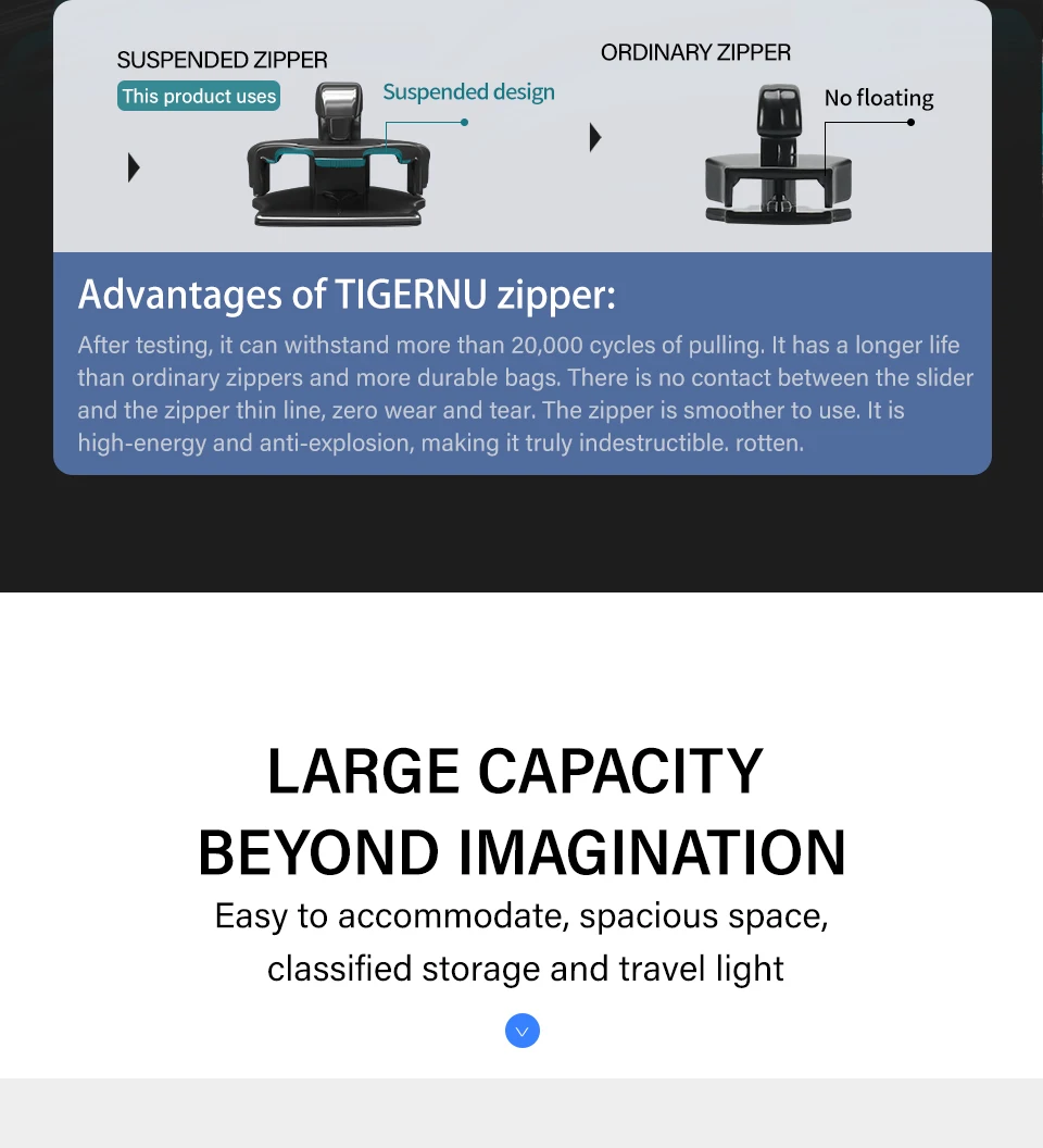 3. Unimaginable large capacity , with separate laptop compartment, fit 12-15.6inch laptop