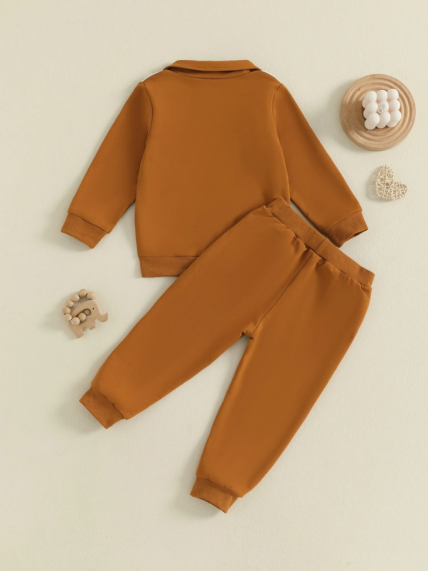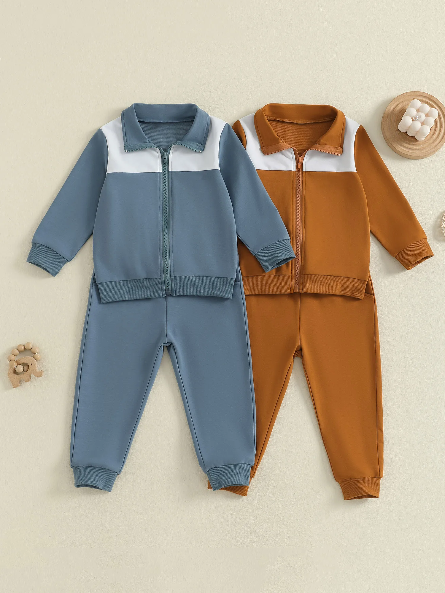 Toddler Boy Fall Outfits Contrast Color Long Sleeve Zip Up Jacket + Elastic Waist Solid Pants 2 Pcs SetSize(cm)
